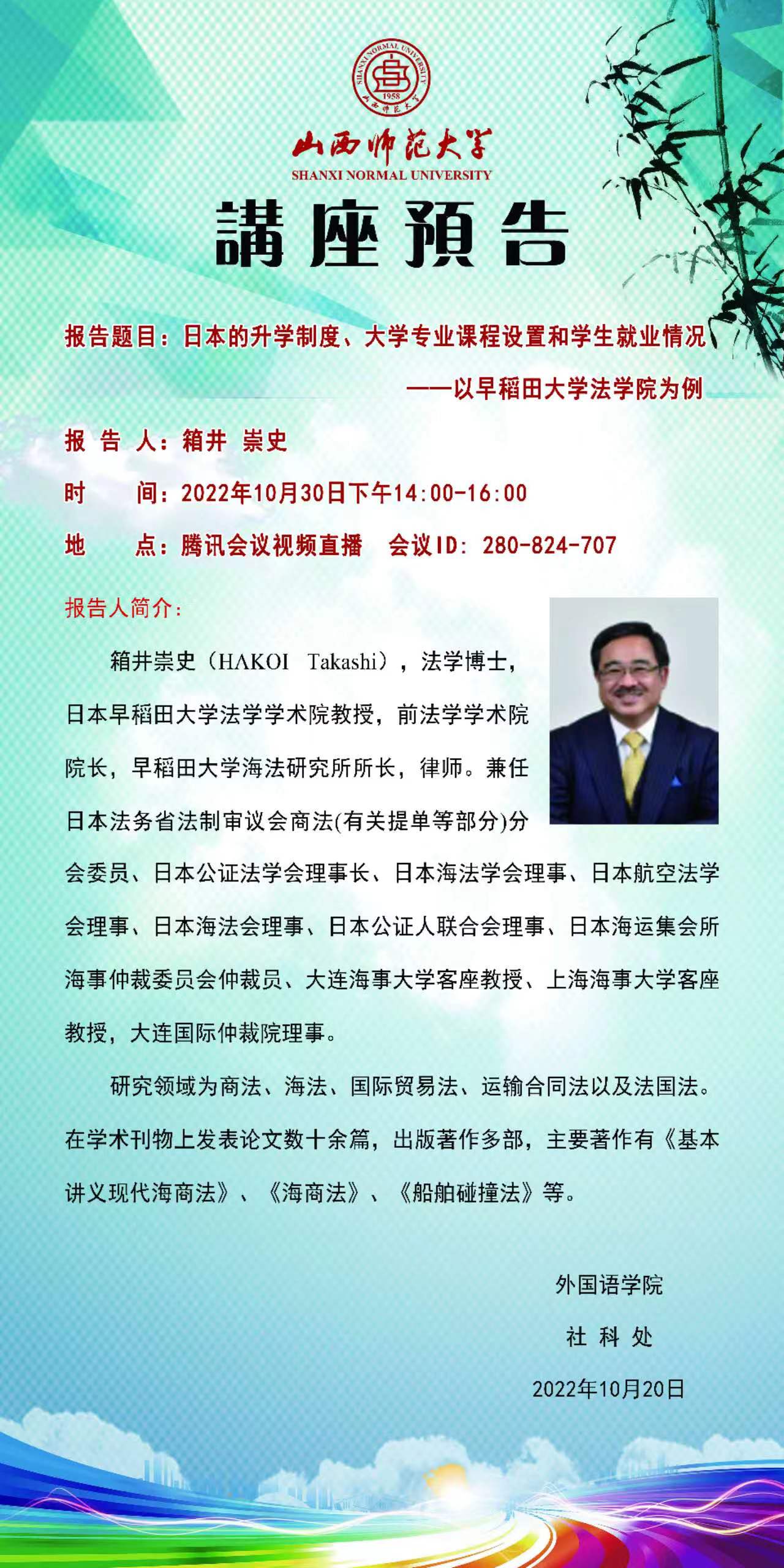 【预告】日本早稻田大学箱井崇史教授应威尼斯官网邀请做线上学术报告