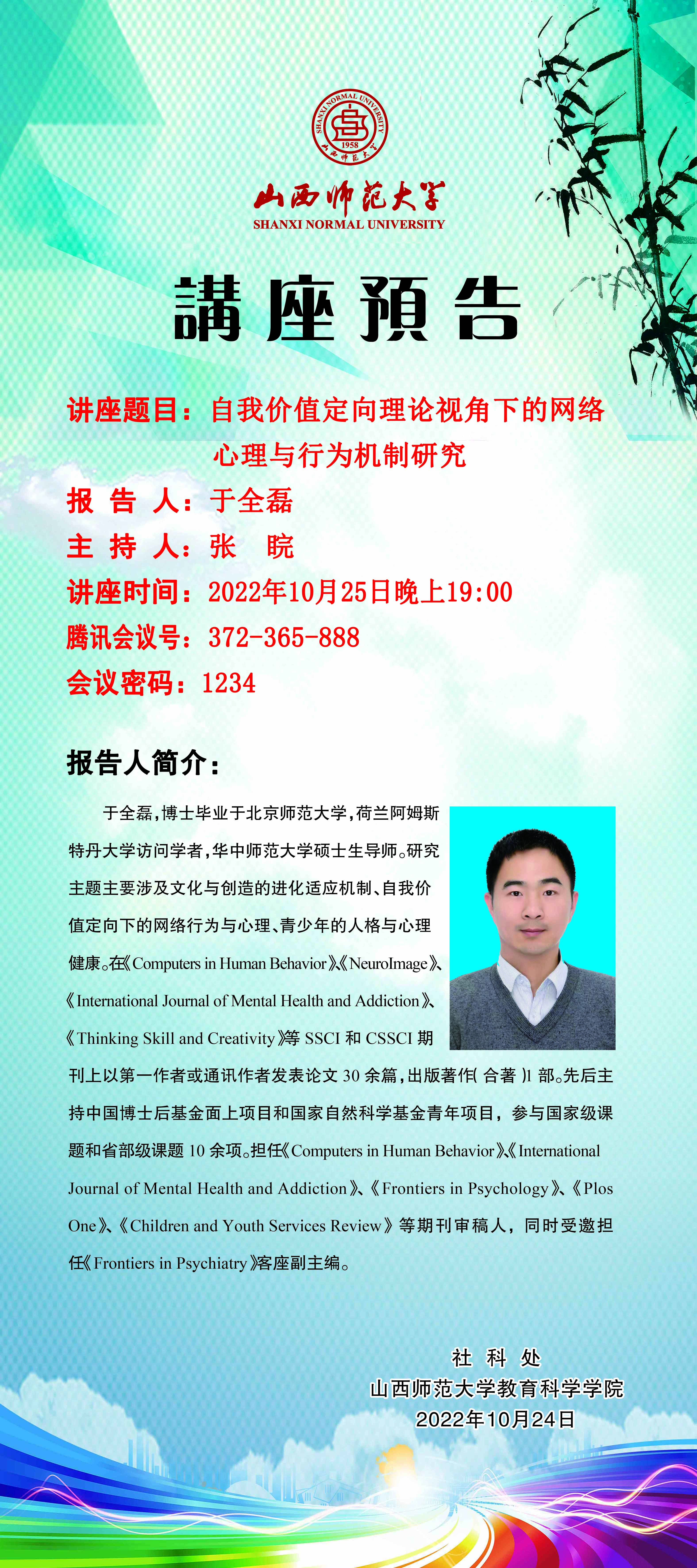 【预告】华中师范大学于全磊教授应威尼斯官网邀请做线上学术报告