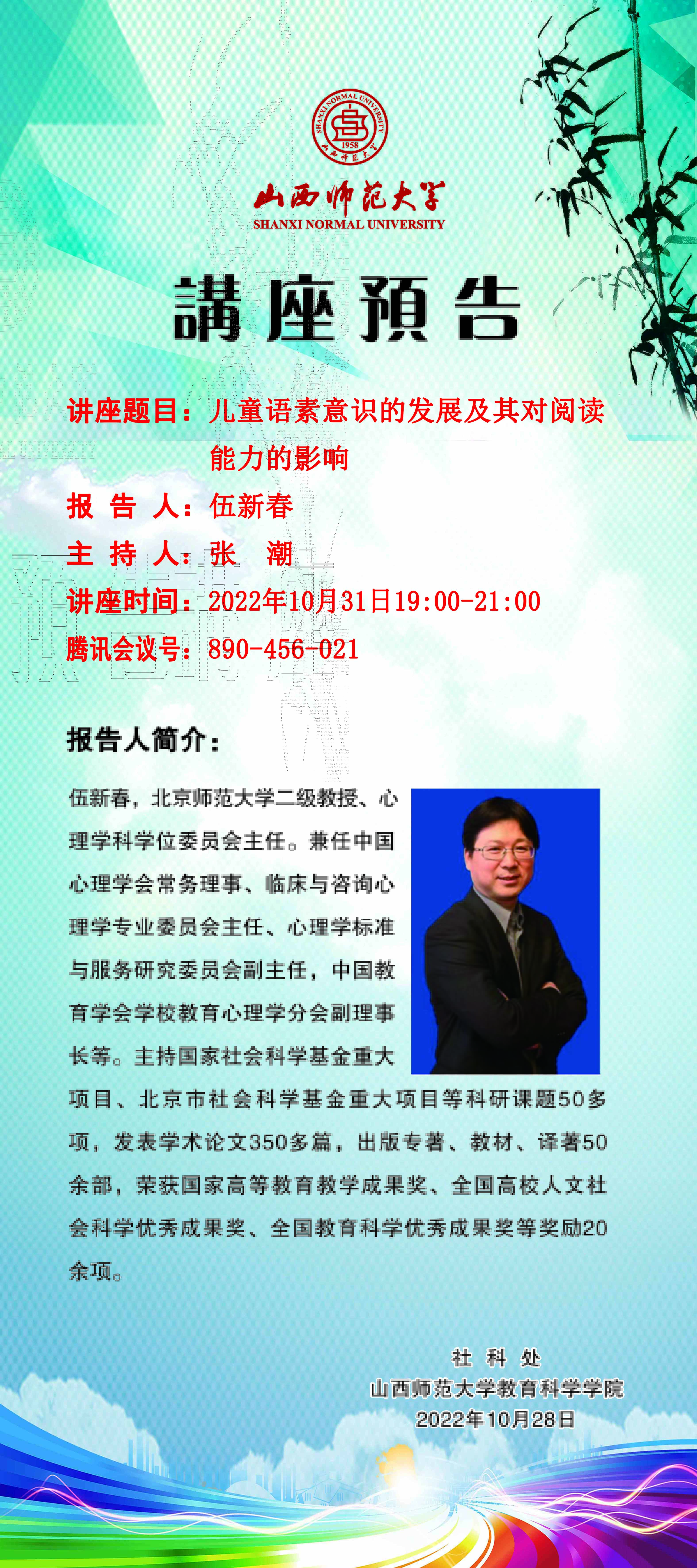 【预告】北京师范大学伍新春教授应威尼斯官网教育科学学院邀请做线上学术报告