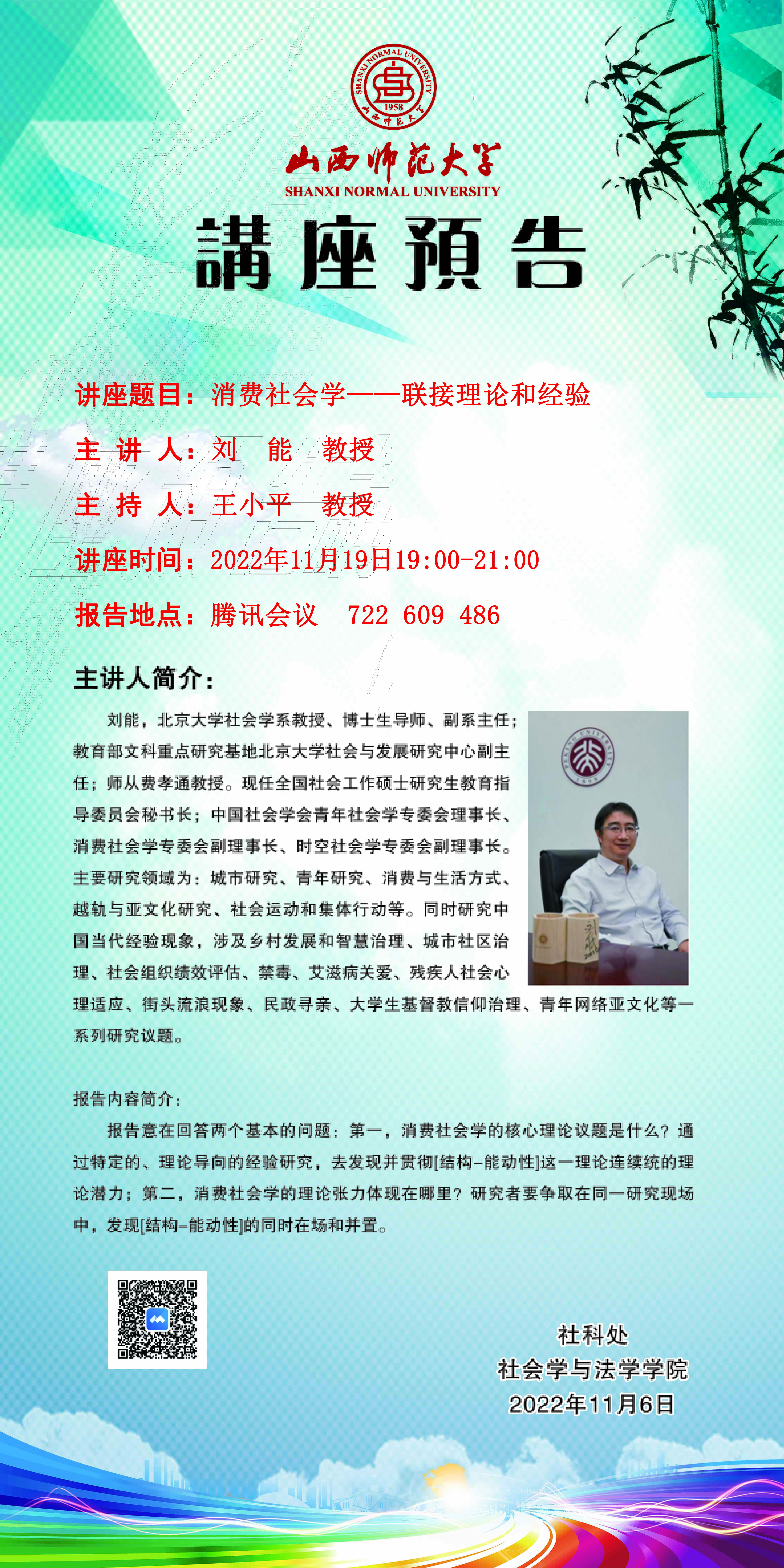 【预告】北京大学教授刘能应威尼斯官网社会与法学院邀请作线上学术报告