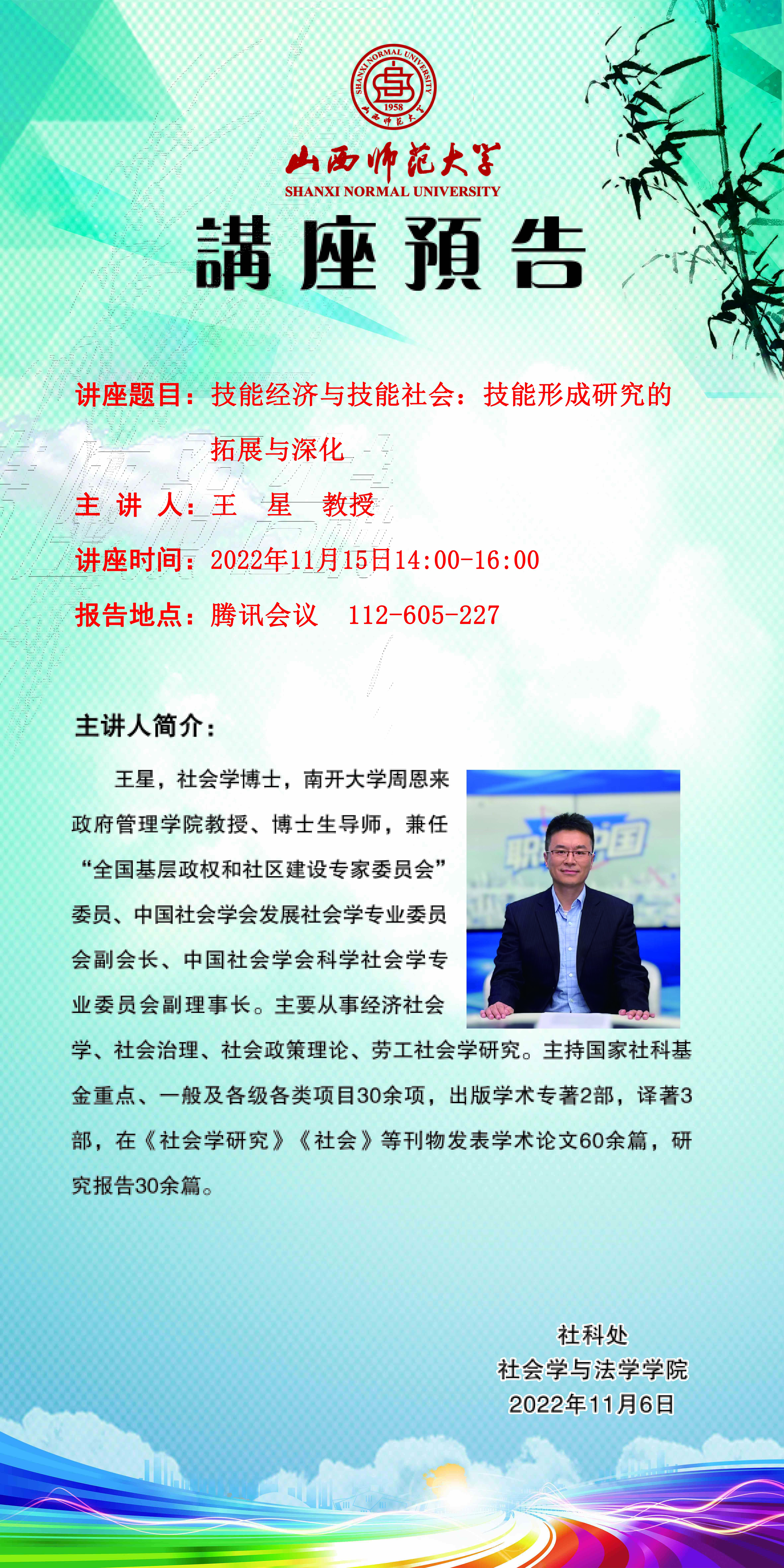 【预告】南开大学教授王星应威尼斯官网社会与法学院邀请作线上学术报告