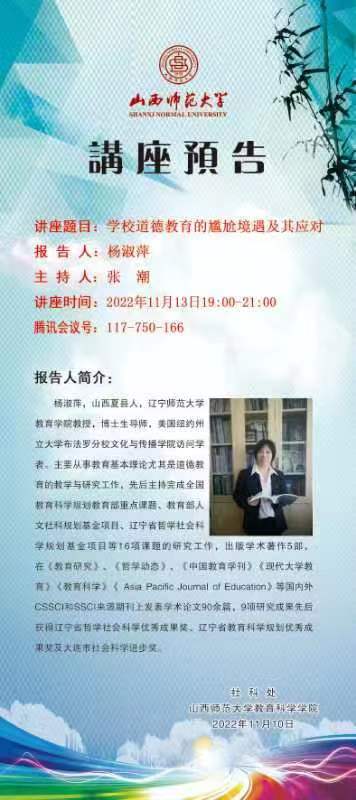 【预告】辽宁师范大学杨淑萍教授应威尼斯官网教育科学学院邀请作线上学术报告
