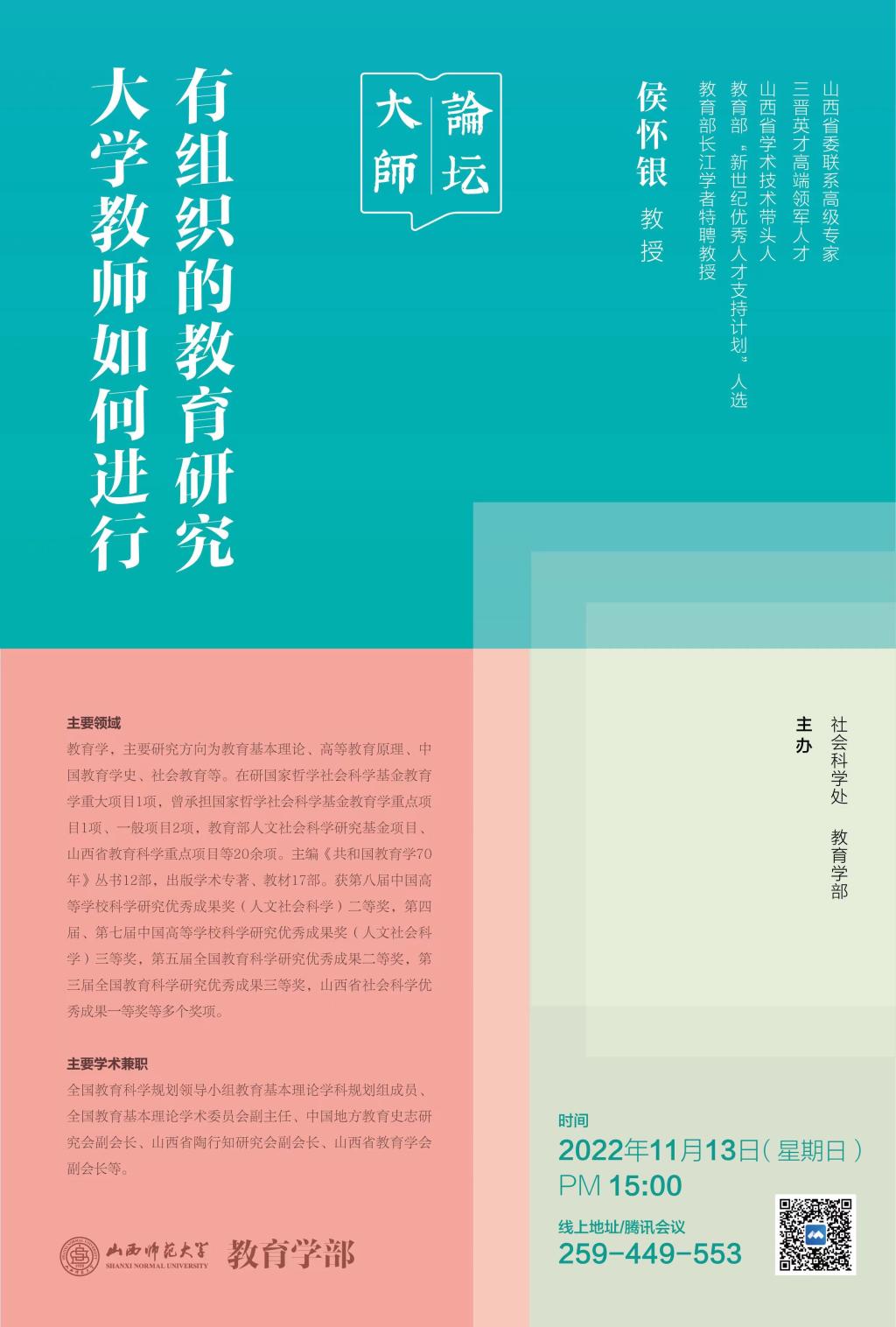 【大师论坛】侯怀银教授为威尼斯官网教师作线上学术报告