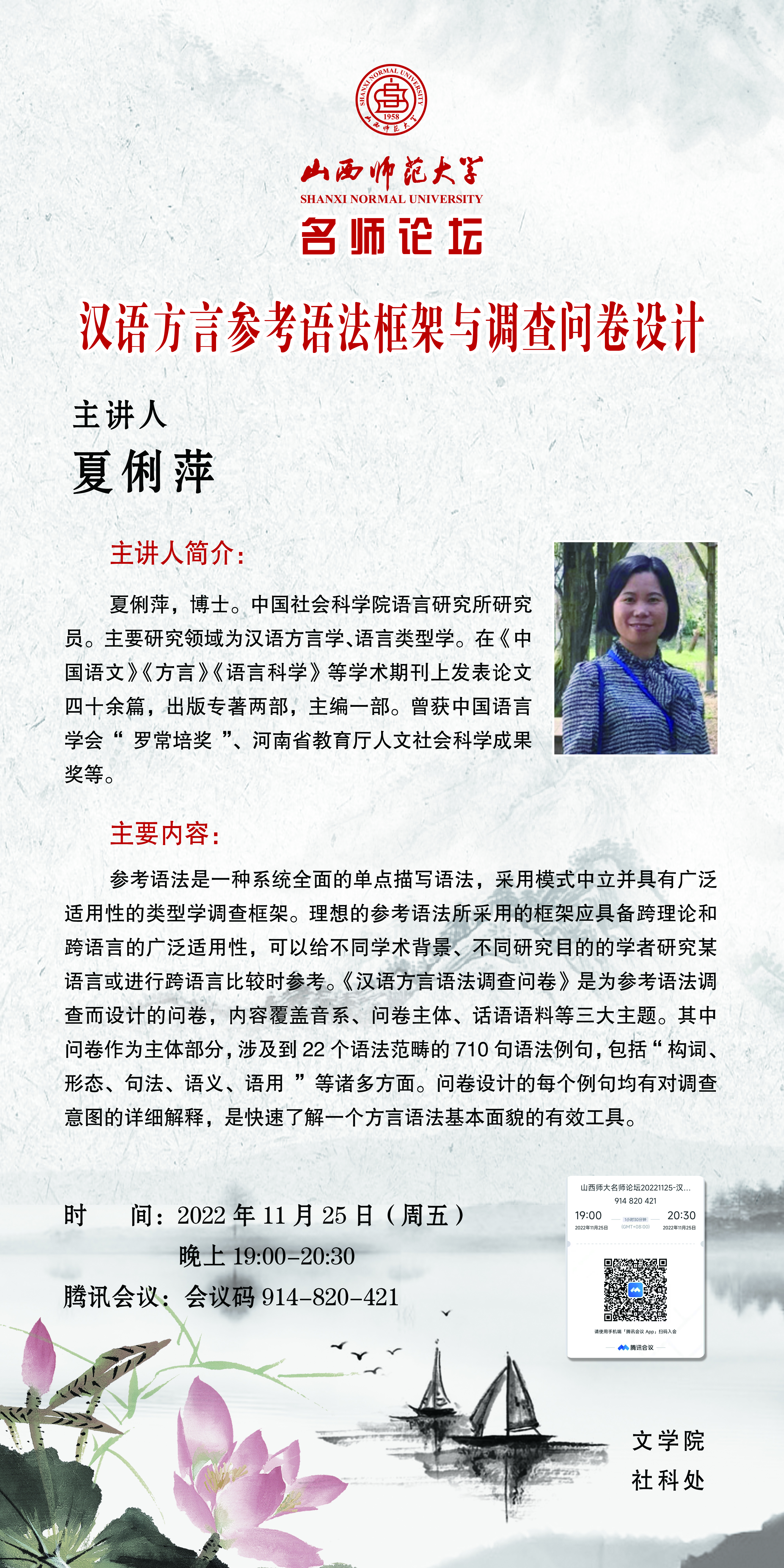 【预告】中国社会科学院研究员夏俐萍应文学院邀请作学术报告