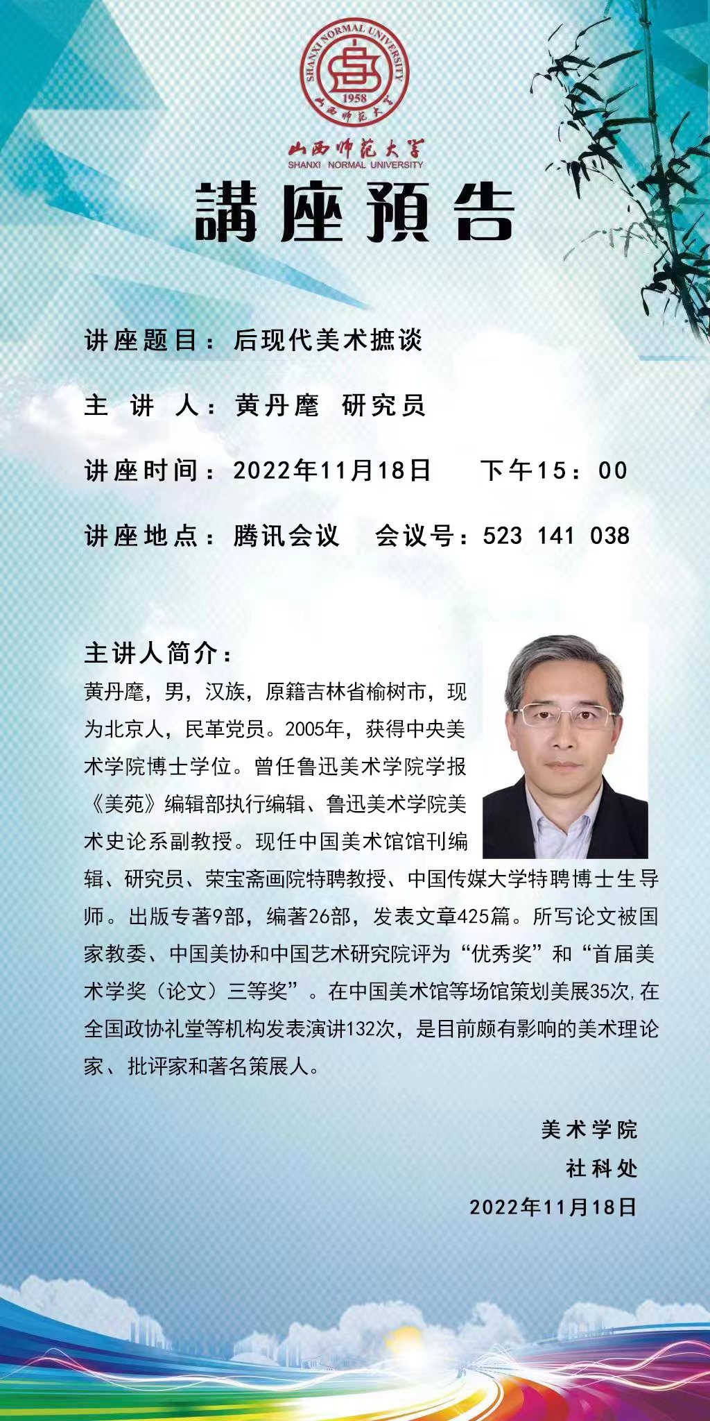 【预告】中国美术馆研究员黄丹麾应威尼斯官网美术学院邀请作线上学术报告
