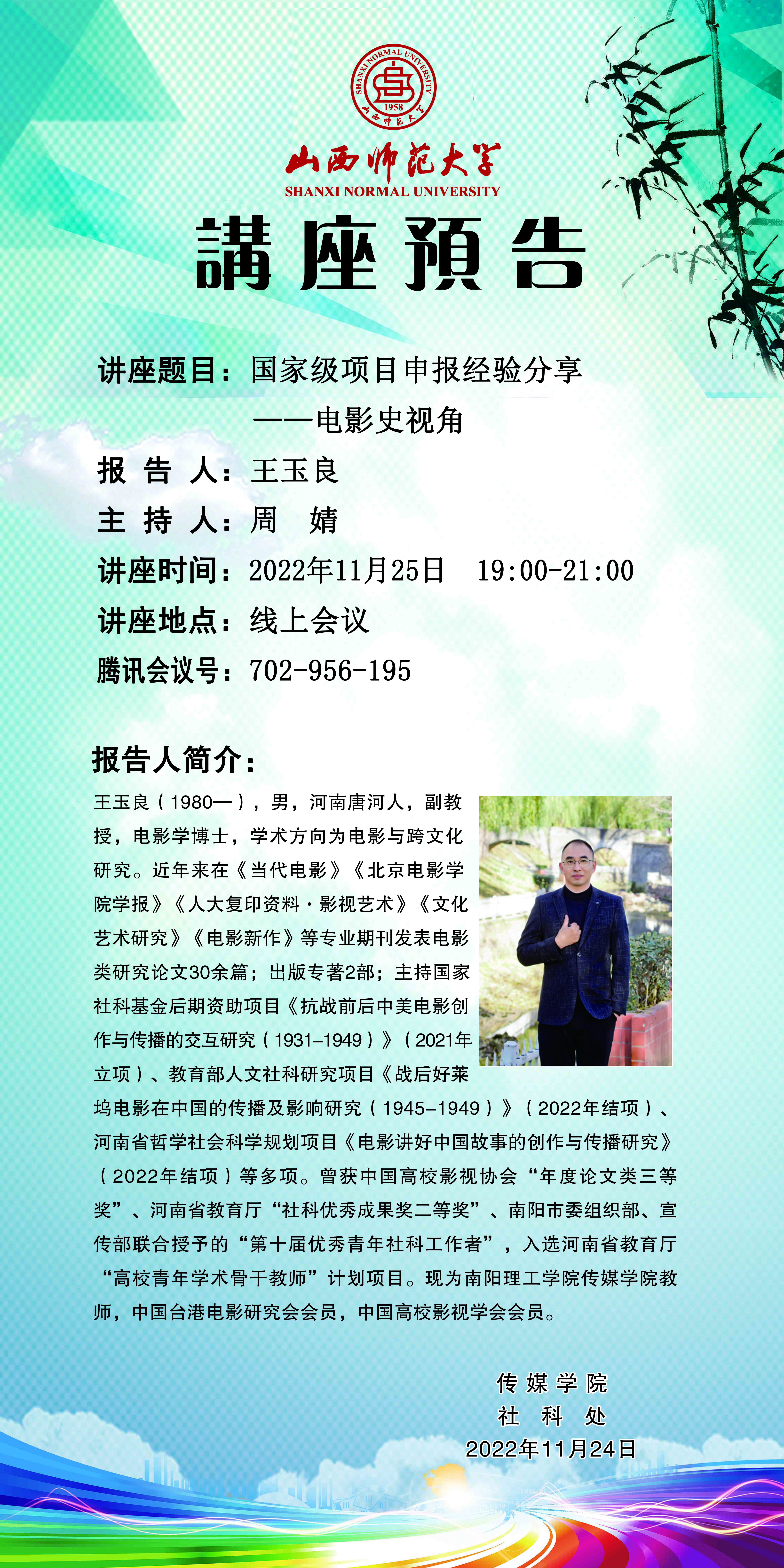【预告】南阳理工学院副教授王玉良应威尼斯官网传媒学院邀请作线上学术报告