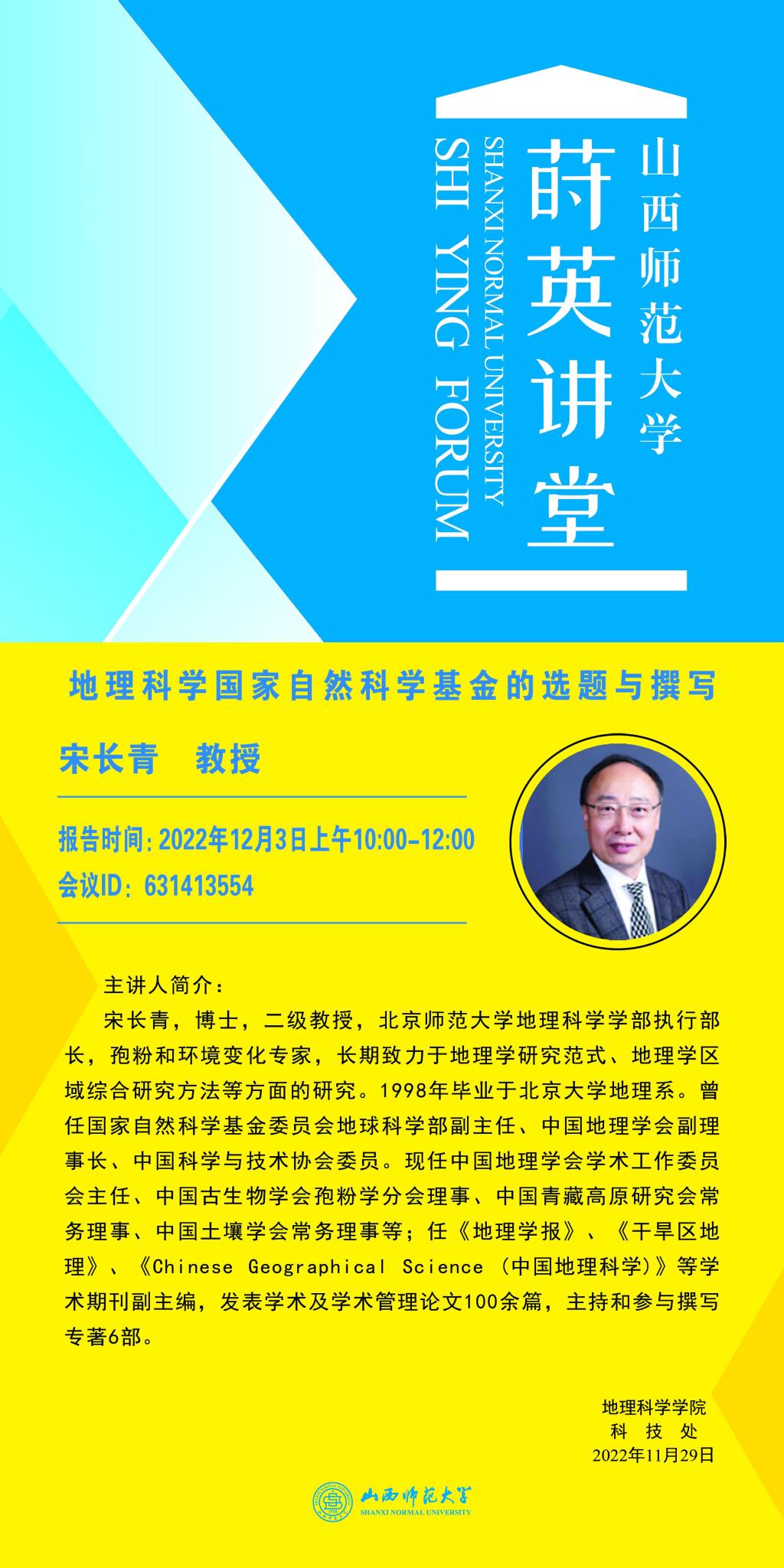 【预告】北京师范大学宋长青教授应威尼斯官网邀请作学术报告