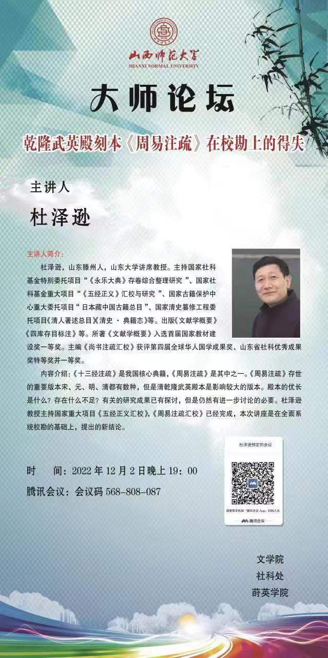 【预告】山东大学教授杜泽逊应威尼斯官网文学院邀请作线上学术报告