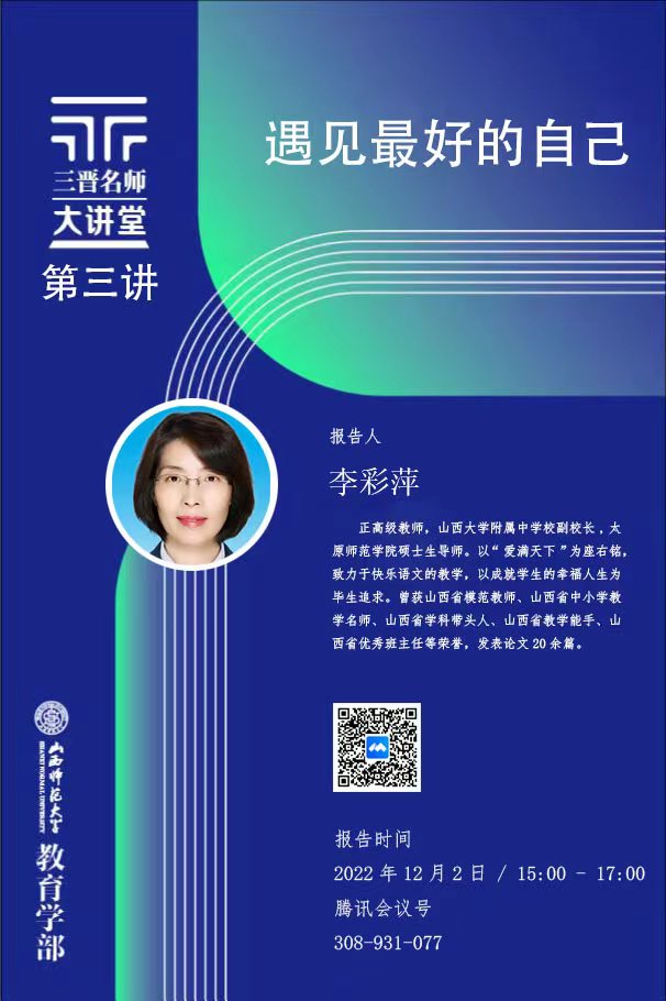 【预告】山西大学附属中学正高级教师李彩萍应威尼斯官网教育学部邀请做线上学术报告