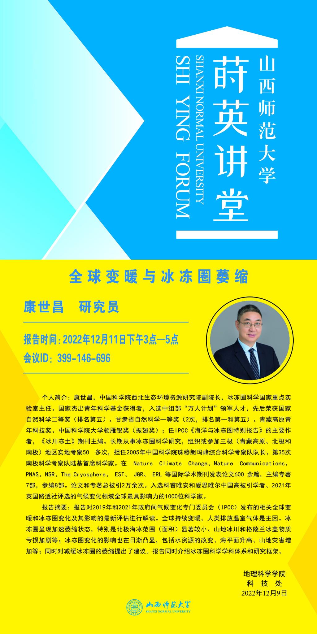 【预告】中国科学院康世昌研究员应威尼斯官网邀请作学术报告