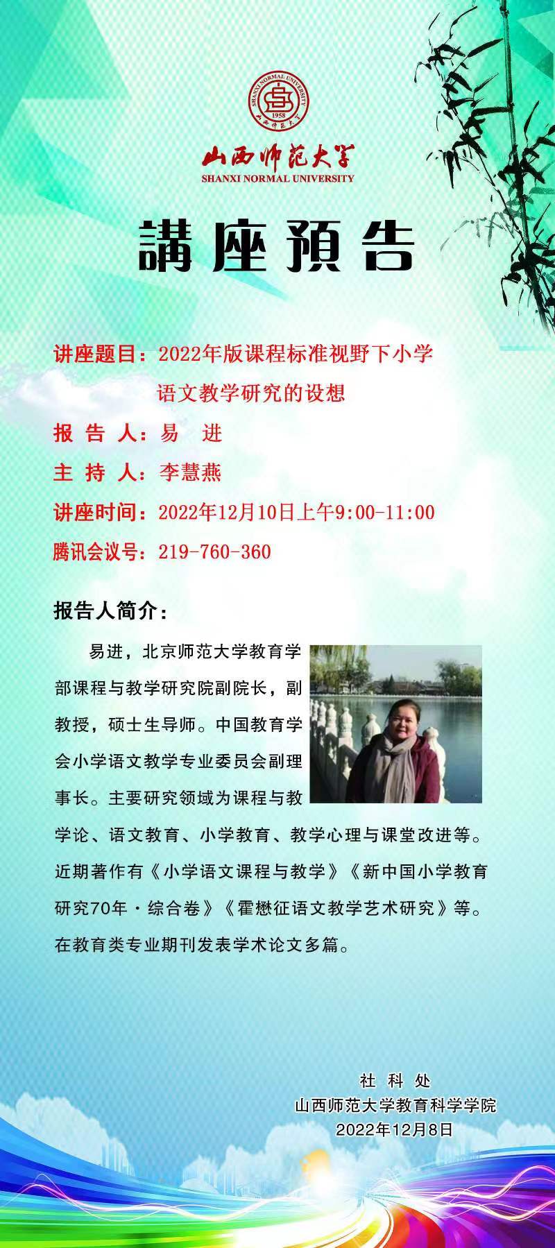 【预告】北京师范大学副教授易进应威尼斯官网教育科学学院邀请作线上学术报告