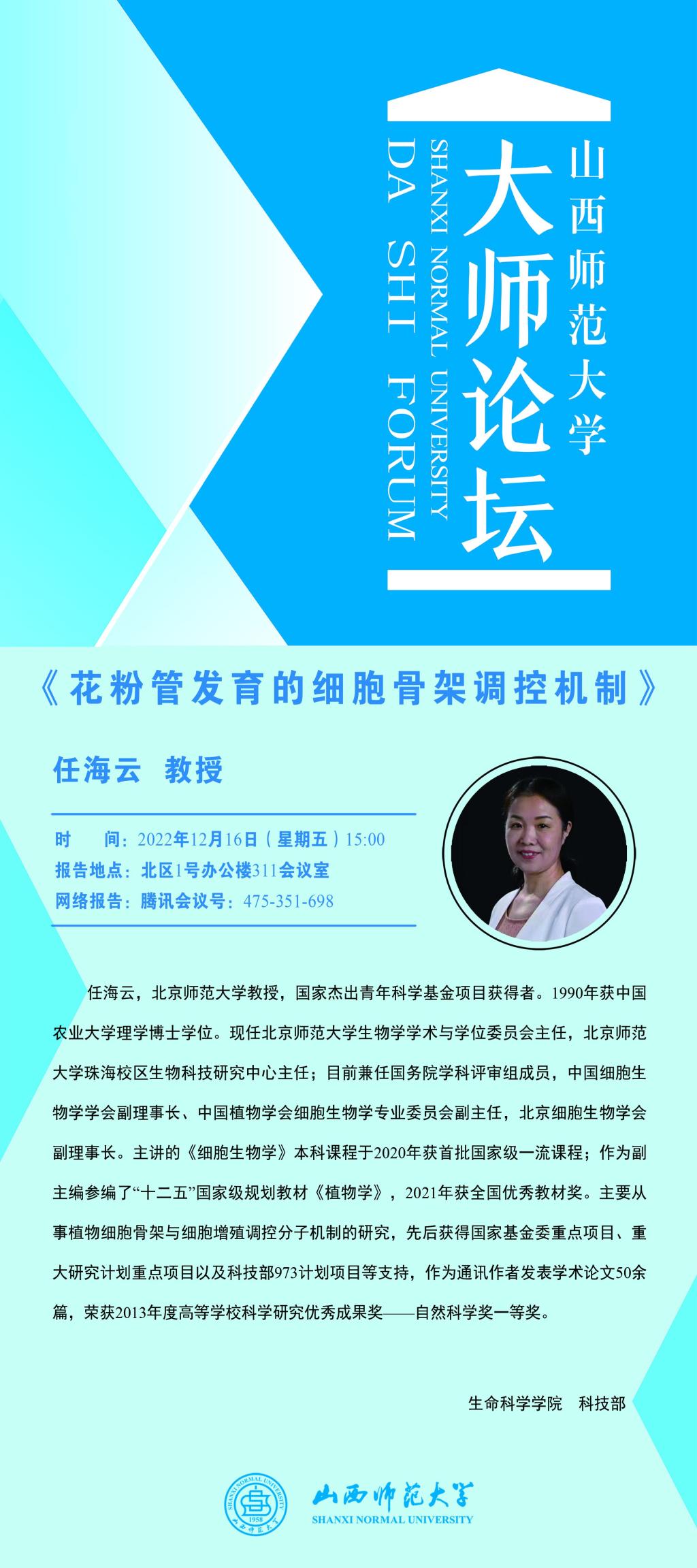 【大师论坛】北京师范大学任海云教授应威尼斯官网邀请作学术报告