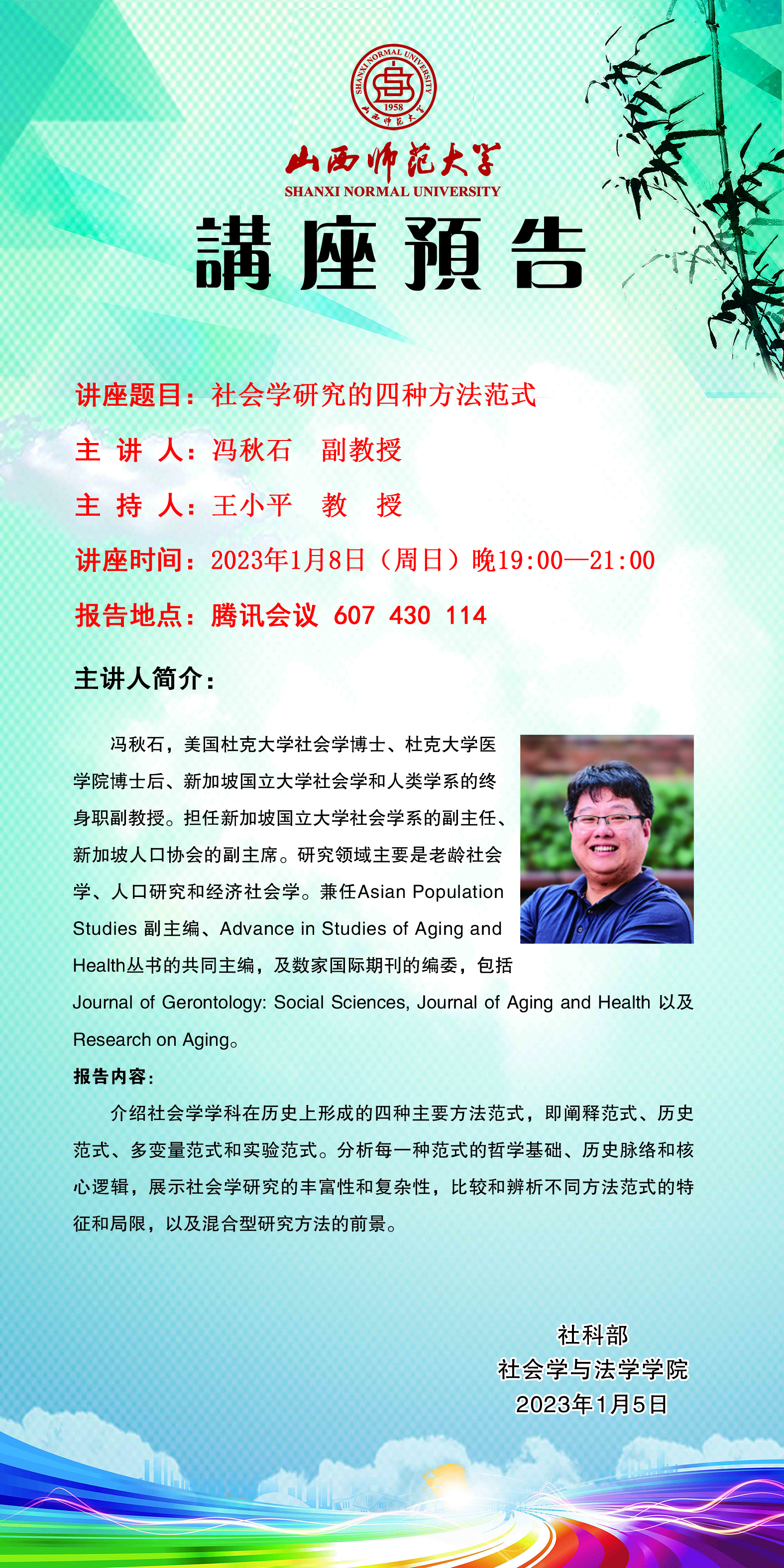 新加坡国立大学副教授冯秋石应威尼斯官网社会学与法学学院邀请作线上学术报告