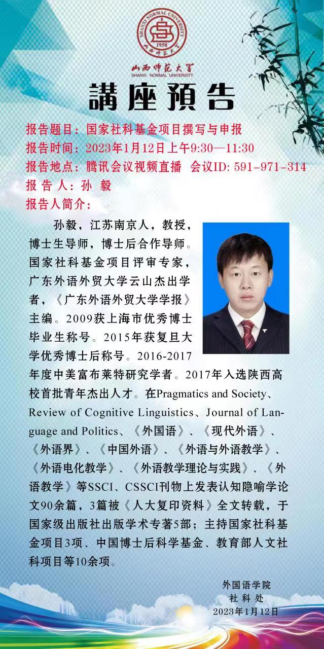 【预告】广东外语外贸大学教授孙毅应威尼斯官网外国语学院邀请作线上学术报告