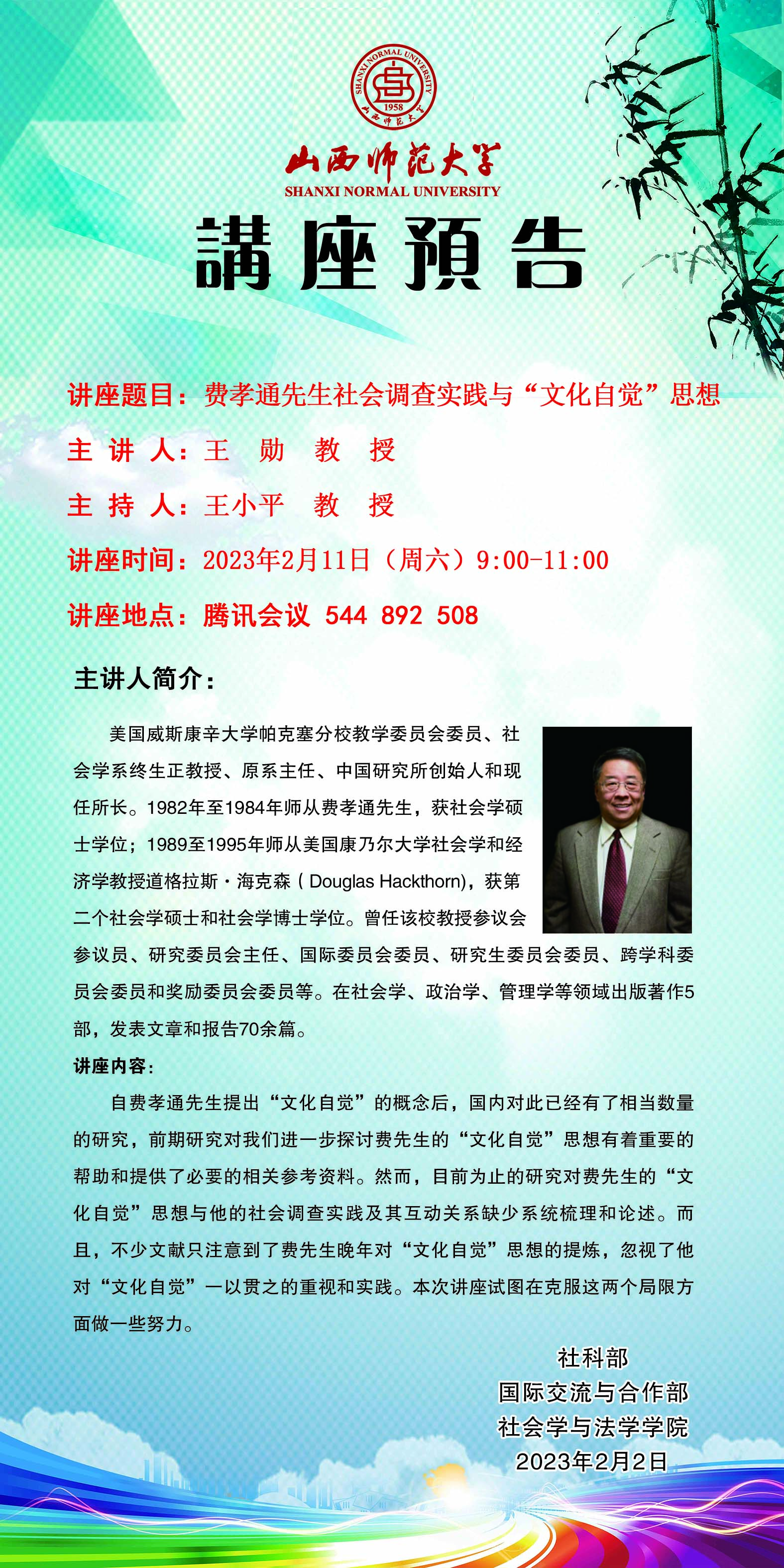 【预告】美国威斯康辛大学教授王勋应威尼斯官网社会学与法学学院邀请作学术报告