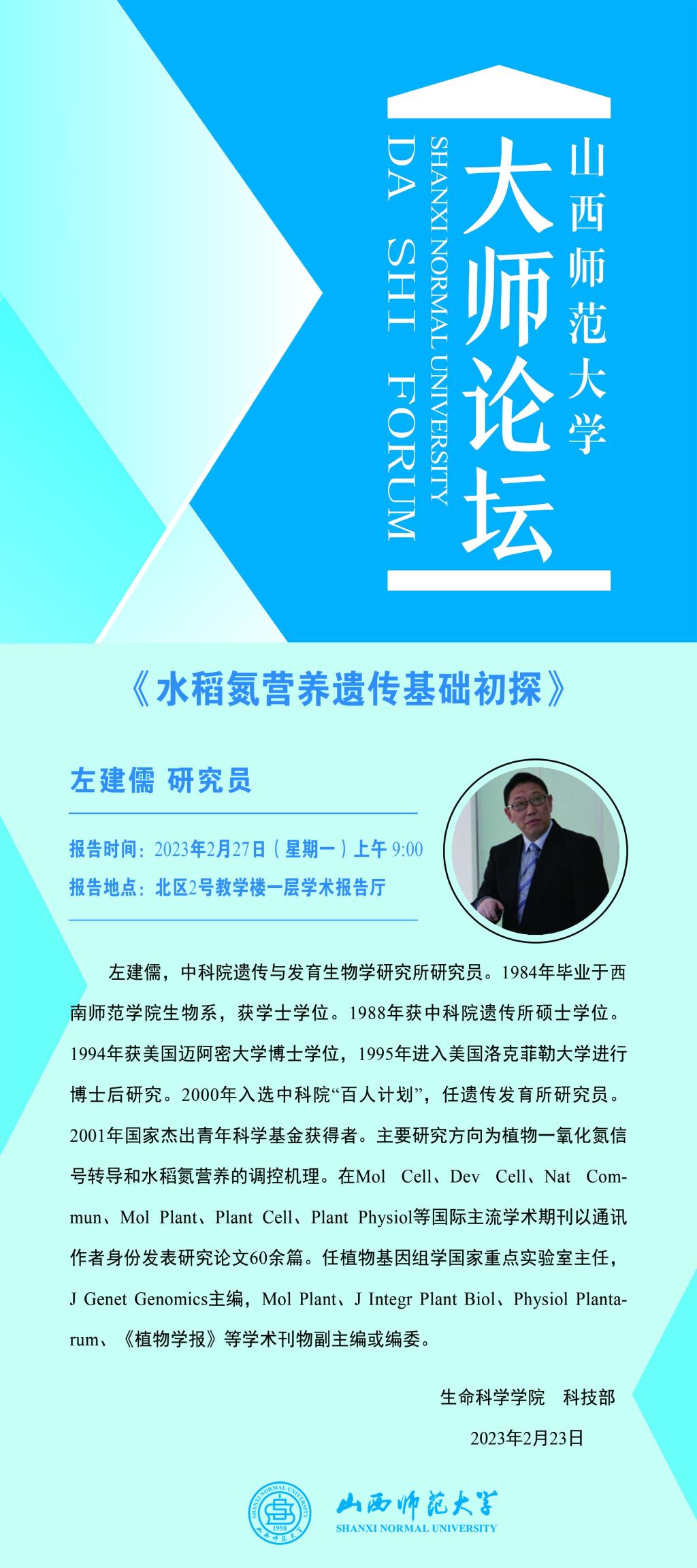 【大师论坛】中国科学院遗传与发育生物学研究所左建儒研究员应威尼斯官网邀请作学术报告