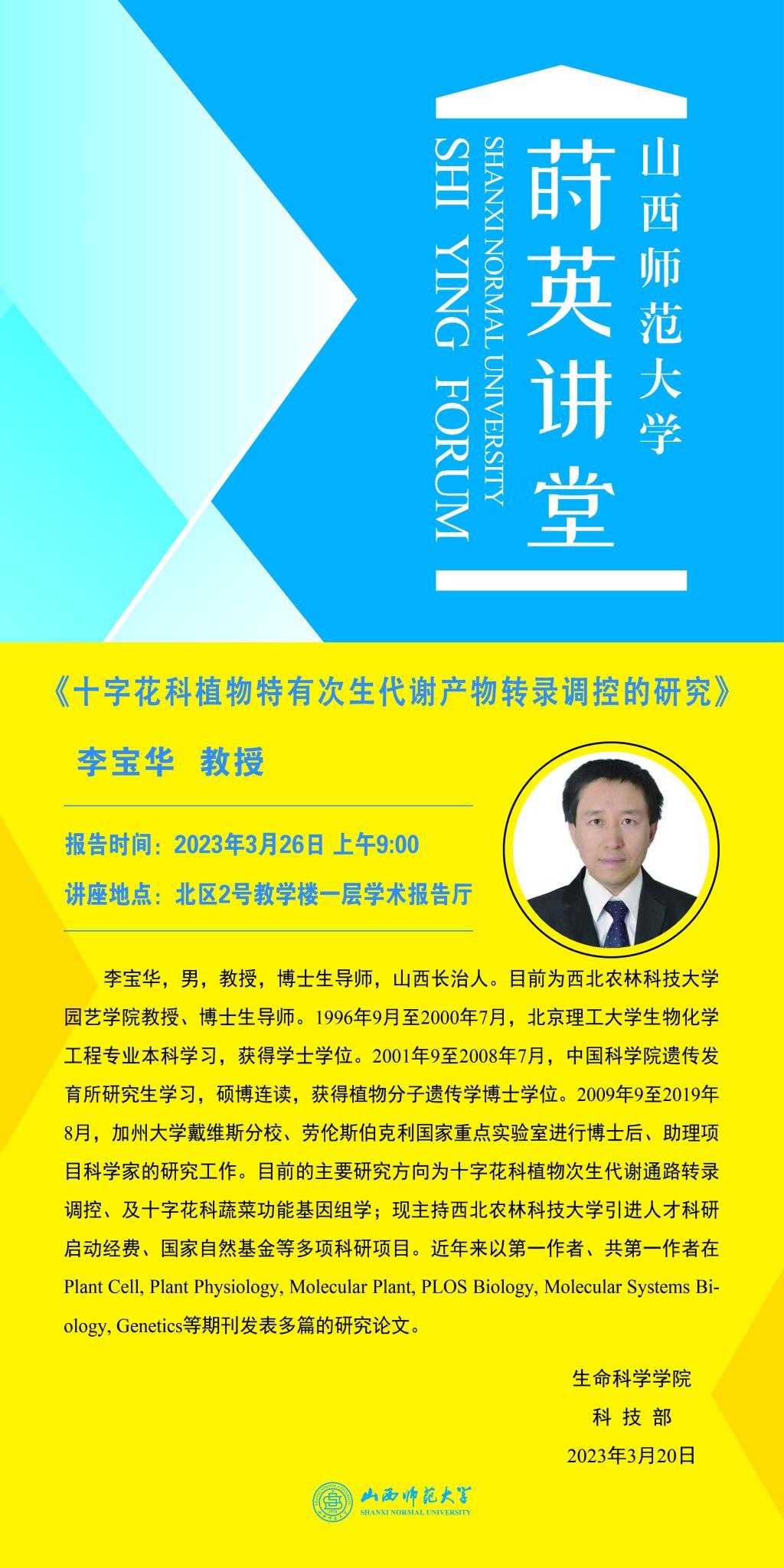 【预告】西北农林科技大学李宝华教授应威尼斯官网邀请作学术报告