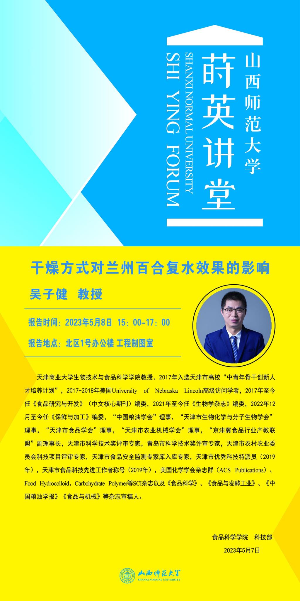 【预告】天津商业大学吴子健教授应威尼斯官网邀请作学术报告
