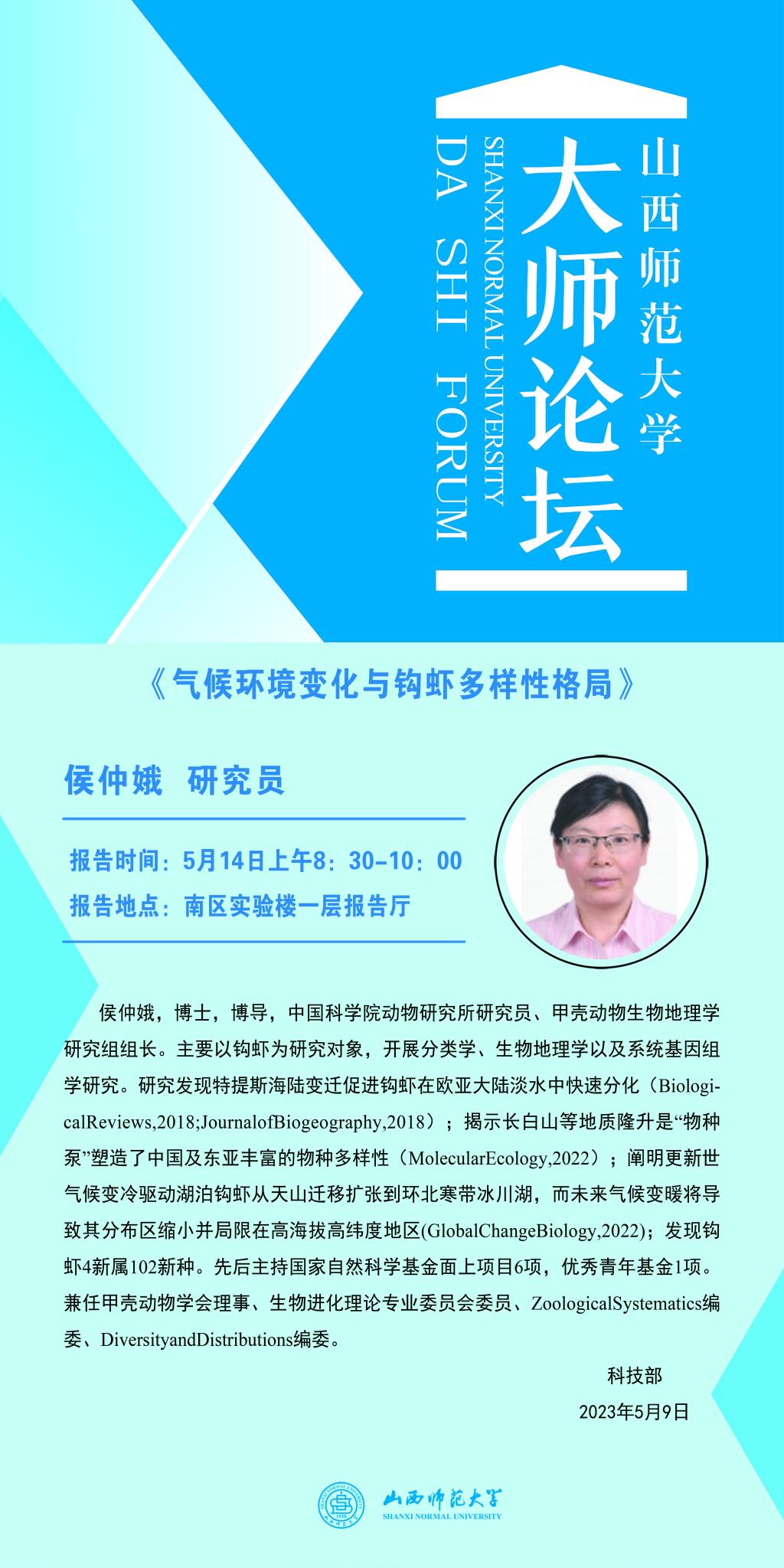 【大师论坛】中国科学院动物研究所侯仲娥研究员应威尼斯官网邀请作学术报告