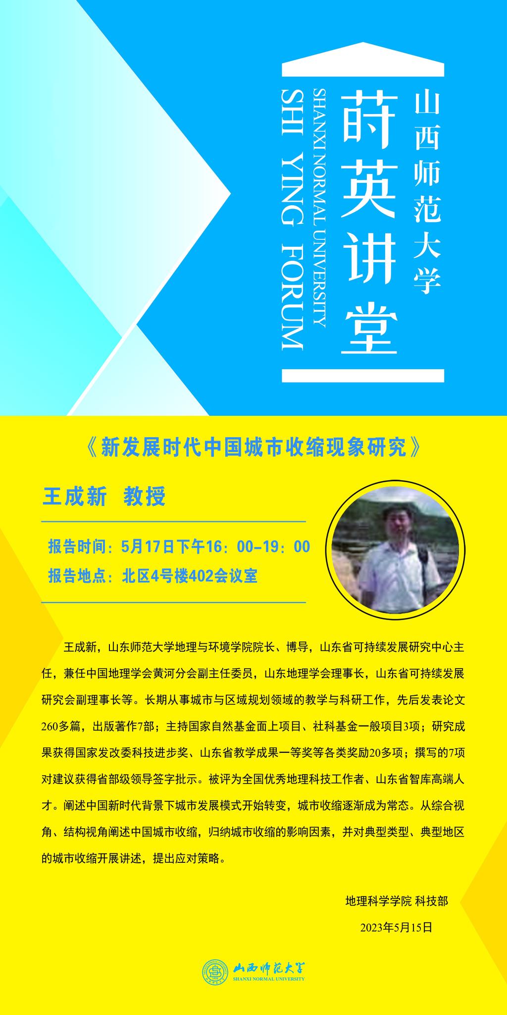 【预告】山东师范大学王成新教授应威尼斯官网邀请作学术报告