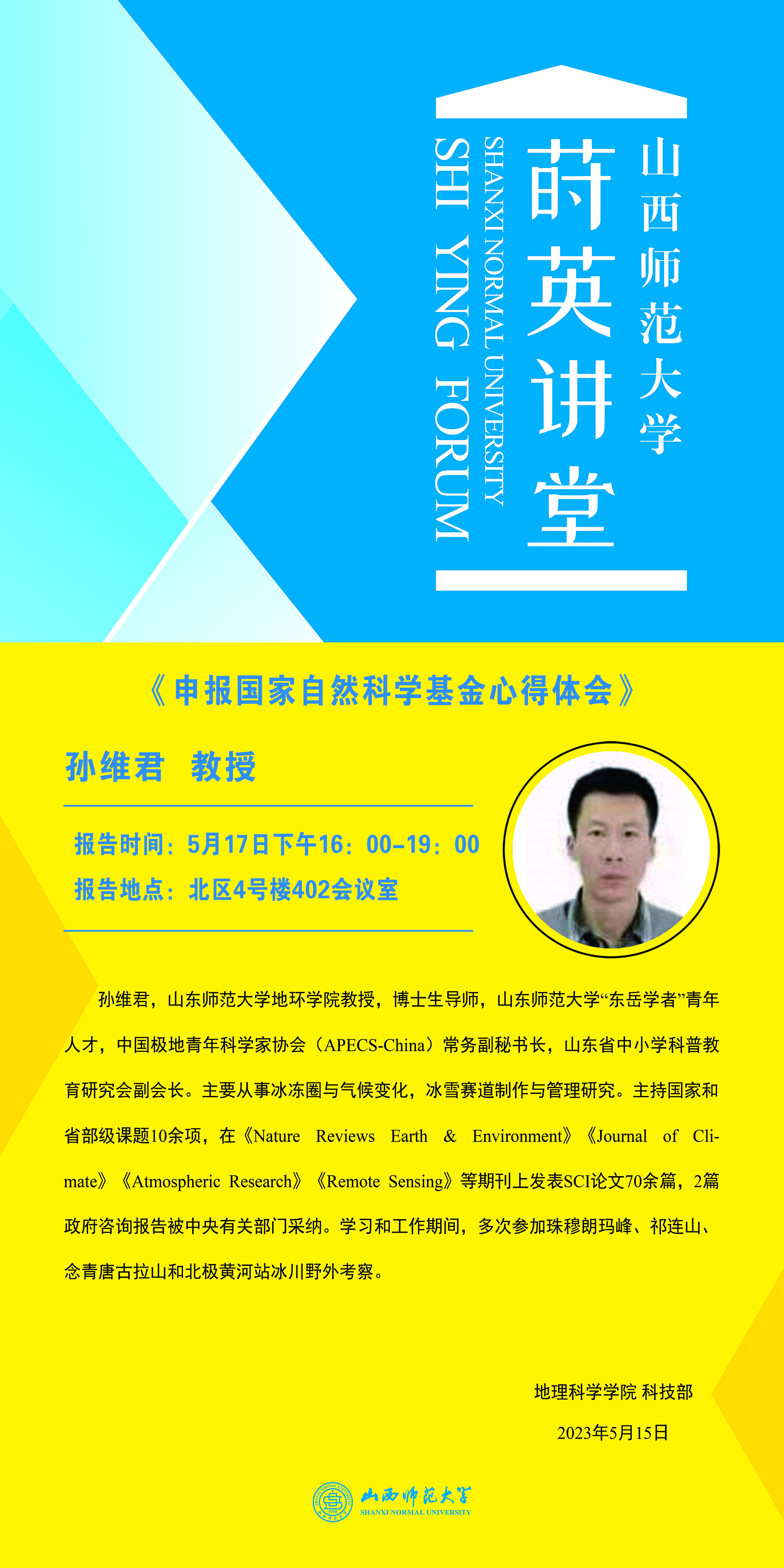 【预告】山东师范大学孙维君教授应威尼斯官网邀请作学术报告