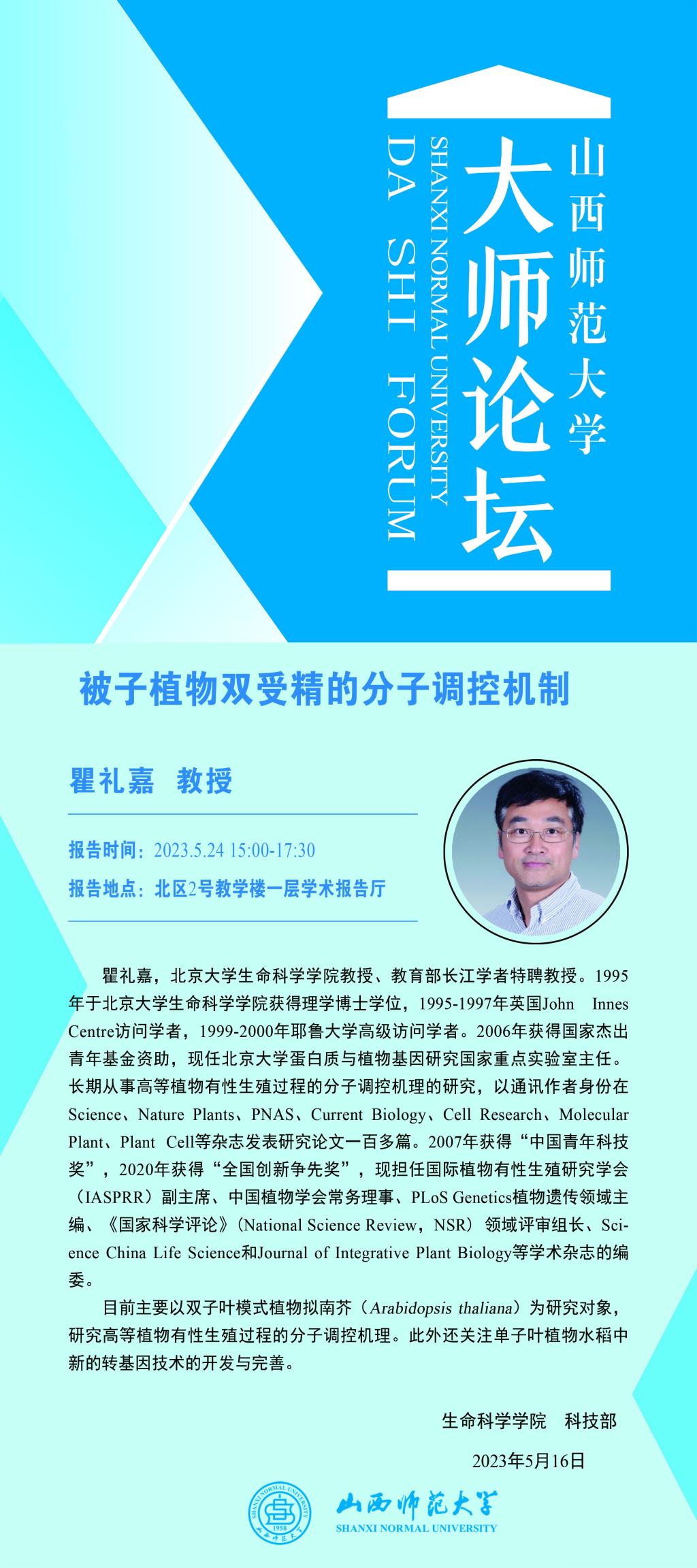 【大师论坛】北京大学瞿礼嘉教授应威尼斯官网邀请作学术报告