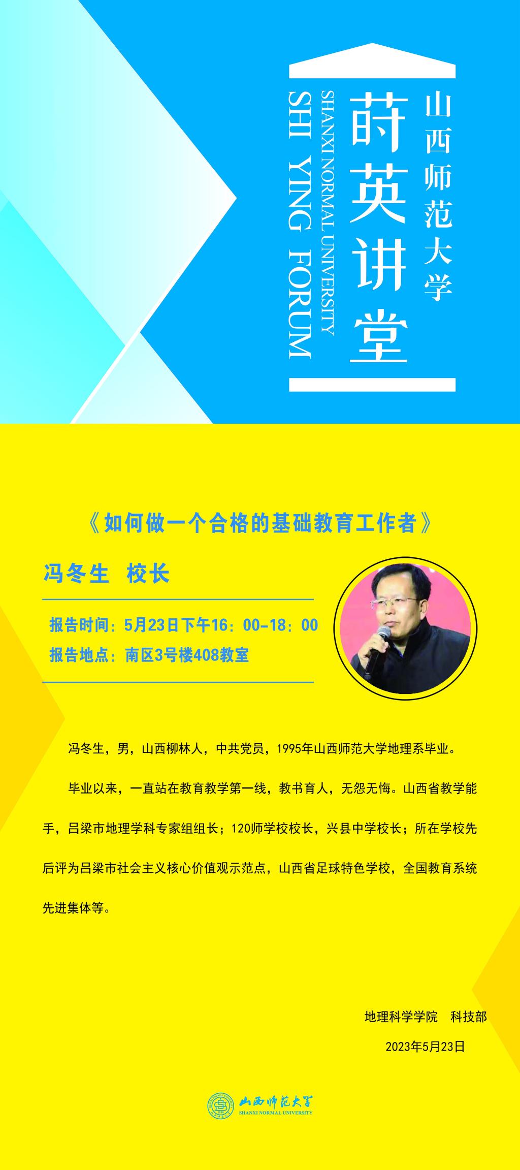 【预告】吕梁兴县中学冯冬生校长应威尼斯官网邀请作学术报告