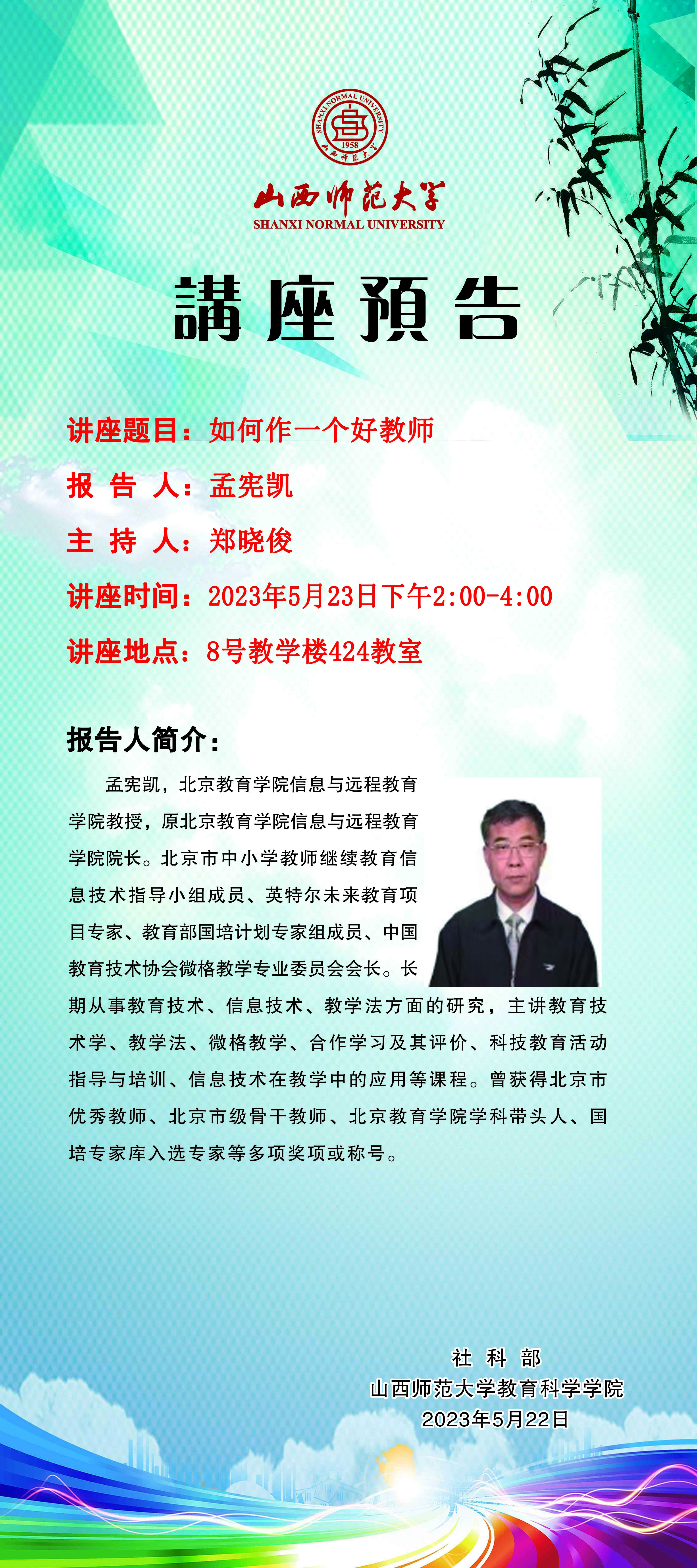【预告】北京教育学院教授孟宪凯应威尼斯官网教育科学学院邀请作学术报告