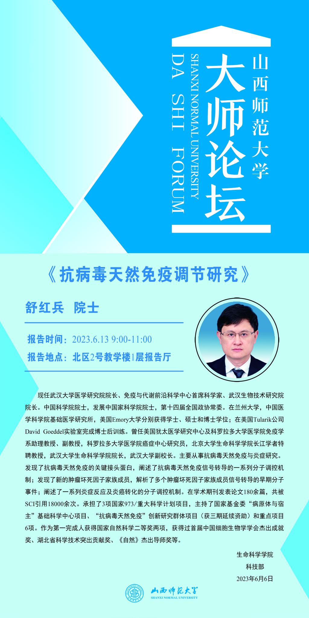 【大师论坛】武汉大学舒红兵院士应威尼斯官网邀请作学术报告