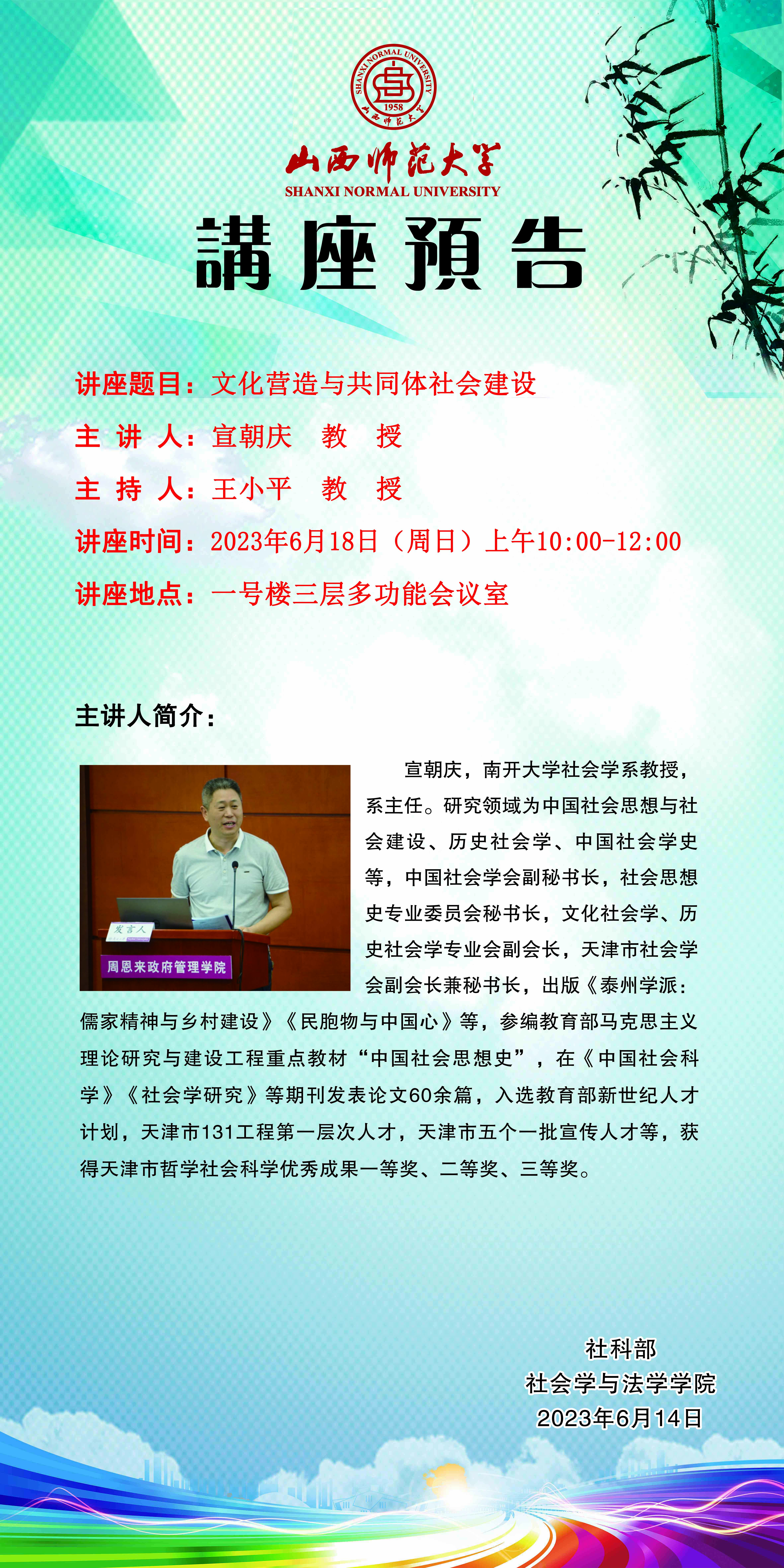 【预告】南开大学社会系宣朝庆教授应社会学与法学学院邀请作学术报告