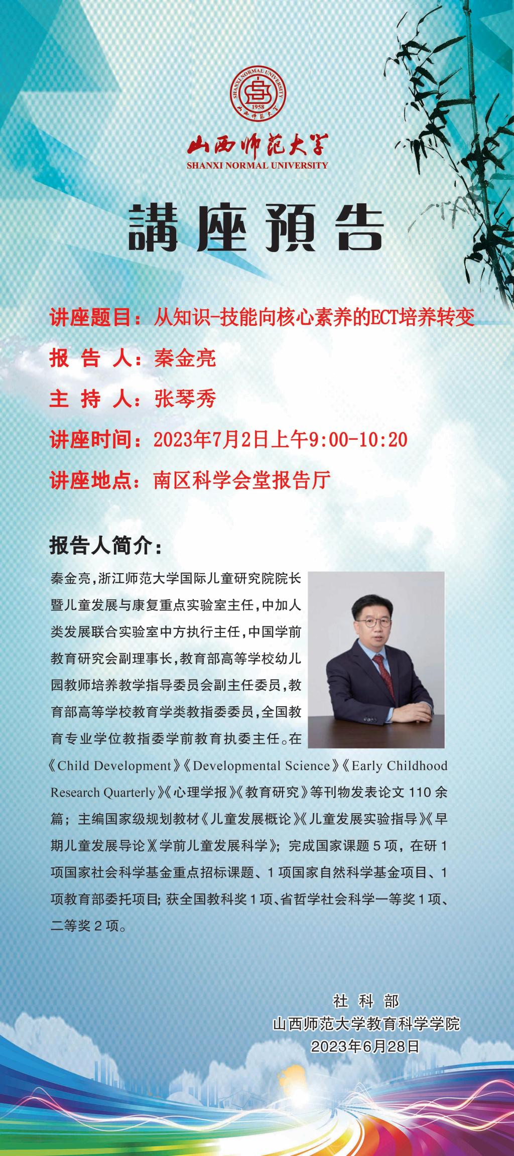 【预告】浙江师范大学国际儿童研究院院长秦金亮应教育科学学院邀请作学术报告