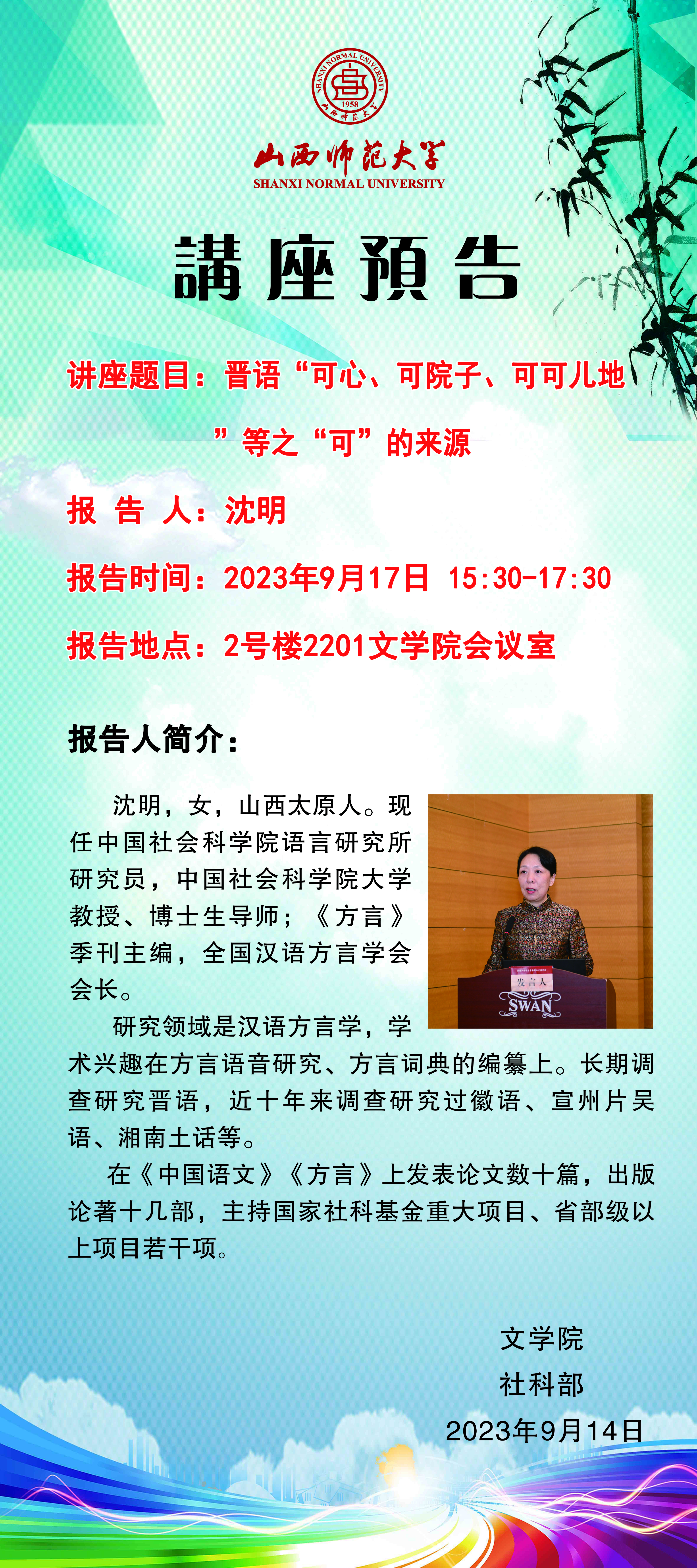 【预告】中国社会科学院语言研究所研究员沈明应威尼斯官网文学院邀请作学术报告