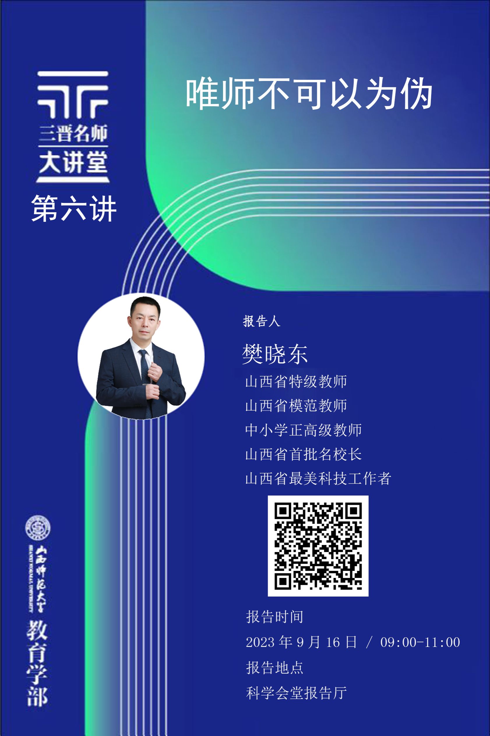 【预告】山西省特级教师樊晓东受威尼斯官网教育学部邀请作学术报告