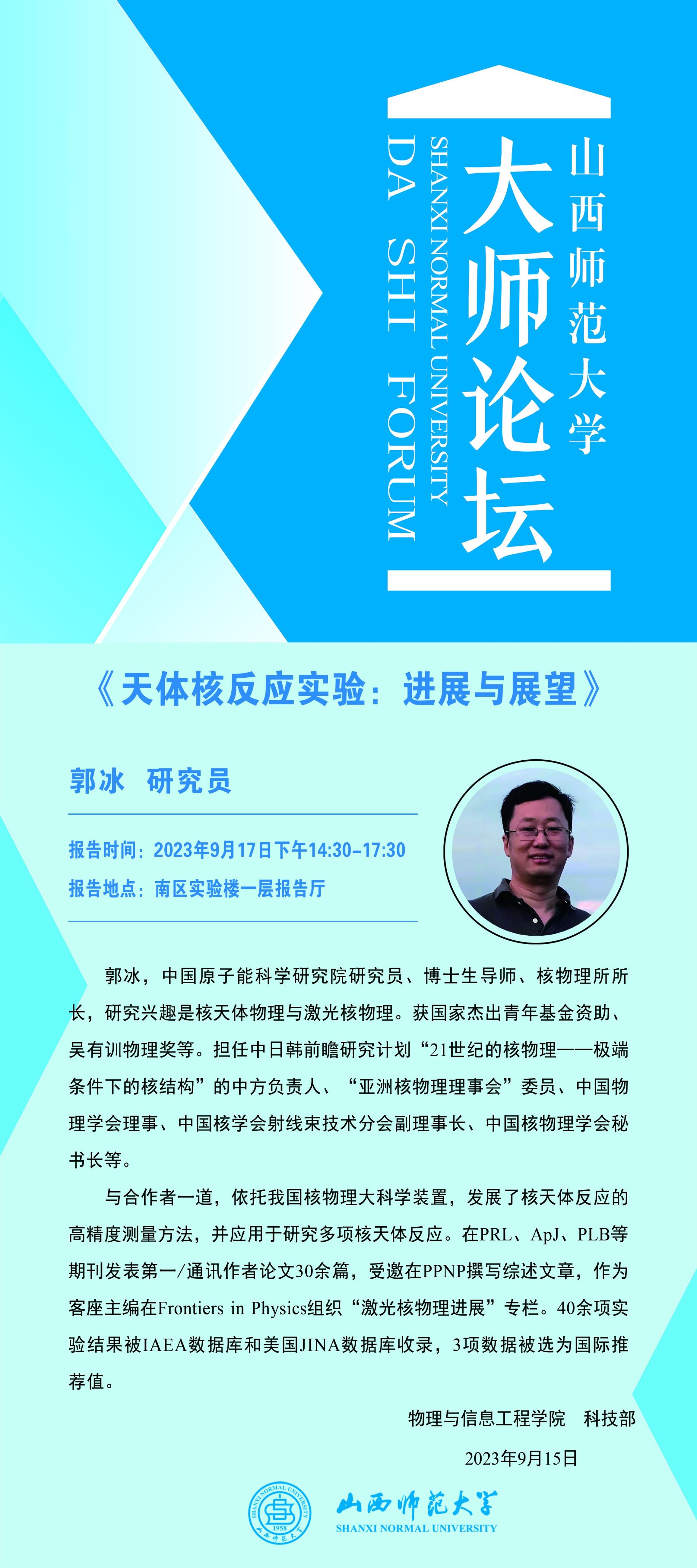 【大师论坛】中国原子能科学研究院郭冰研究员应威尼斯官网邀请作学术报告