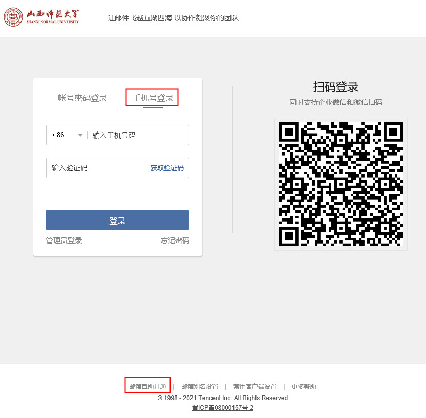 新用户可通过邮箱登录页面下方的“邮箱自助开通”开通邮箱(需通过企业微信扫码认证身份)。