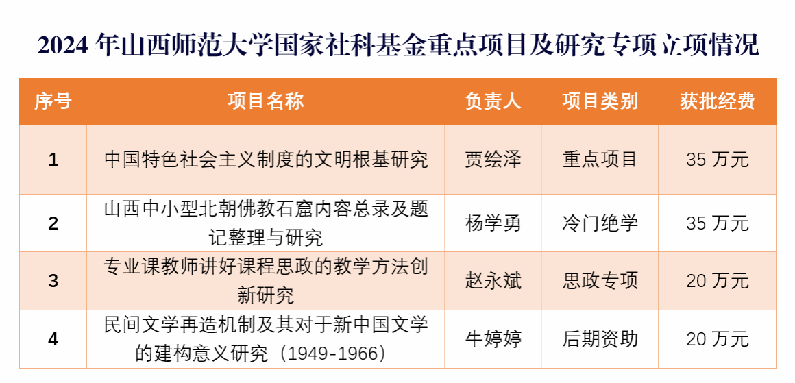 近日,威尼斯官网在社会科学研究领域再度传来喜讯,成功获批2024年国家社科基金重点项目1项及研究专项3项。(来源:社科部)