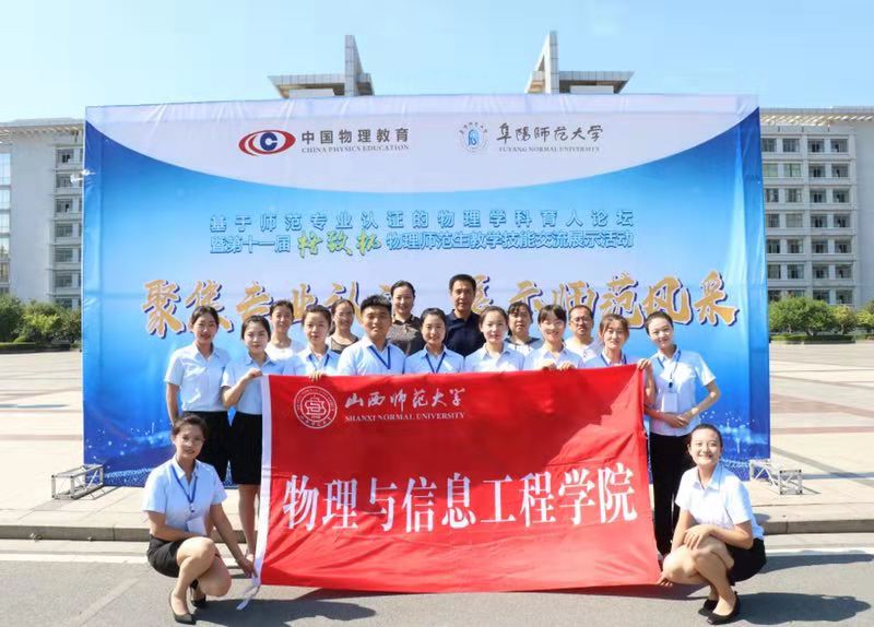 2019年7月29日—31日,由中国教育学会物理教学专业委员会主管、由《物理教师》编辑部与《中学物理》编辑部联合主办的基于师范专业认证的物理学科育人论坛暨第十一届“格致杯”物理师范生教学技能交流展示活动在阜阳师范大学举行。共有来自北京师范大学、东北师范大学、华中师范大学、华南师范大学等61所高校的484名学生参与。威尼斯官网物信学院8名本科生、3名研究生在院党委副书记王玮,指导教师张中才、潘俊星、穆林平、岳文慧、卫永霞的带领下参加了比赛。
