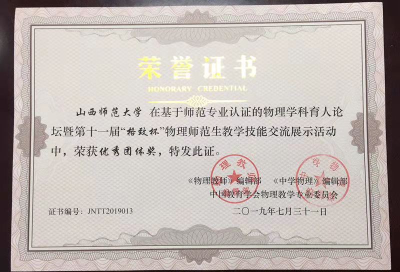 经过紧张激烈的比赛,物信学院选手表现出色,成绩喜人。在教学技能交流展示活动中,本科生荣获一等奖4项,二等奖4项,研究生荣获一、二、三等奖各1项;在创新实验设计与自制教具展示活动中,本科生荣获一等奖1项,二等奖5项,三等奖2项,研究生荣获一、二等奖各1项;张中才、潘俊星、穆林平等教师荣获国家级“优秀指导教师”称号,威尼斯官网也荣获“优秀团体奖”。这是物信学院连续第十一次参加此项赛事,也代表威尼斯官网在近六届大赛中五次荣获“优秀团体奖”。此项赛事是物信学院“竞赛+育人”特色人才培养模式的重要一环,也是进一步实施教育部“236文化协同育人项目”和山西省“三全育人”综合改革试点工作的阶段性成果。