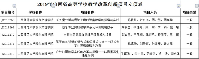近日,省教育厅下发了《关于公示2019年山西省高等学校教学改革创新项目和大学生创新创业训练计划项目拟立项项目的通知》(晋教高函〔2019〕15号),现代文理学院共有26项研究项目获批。