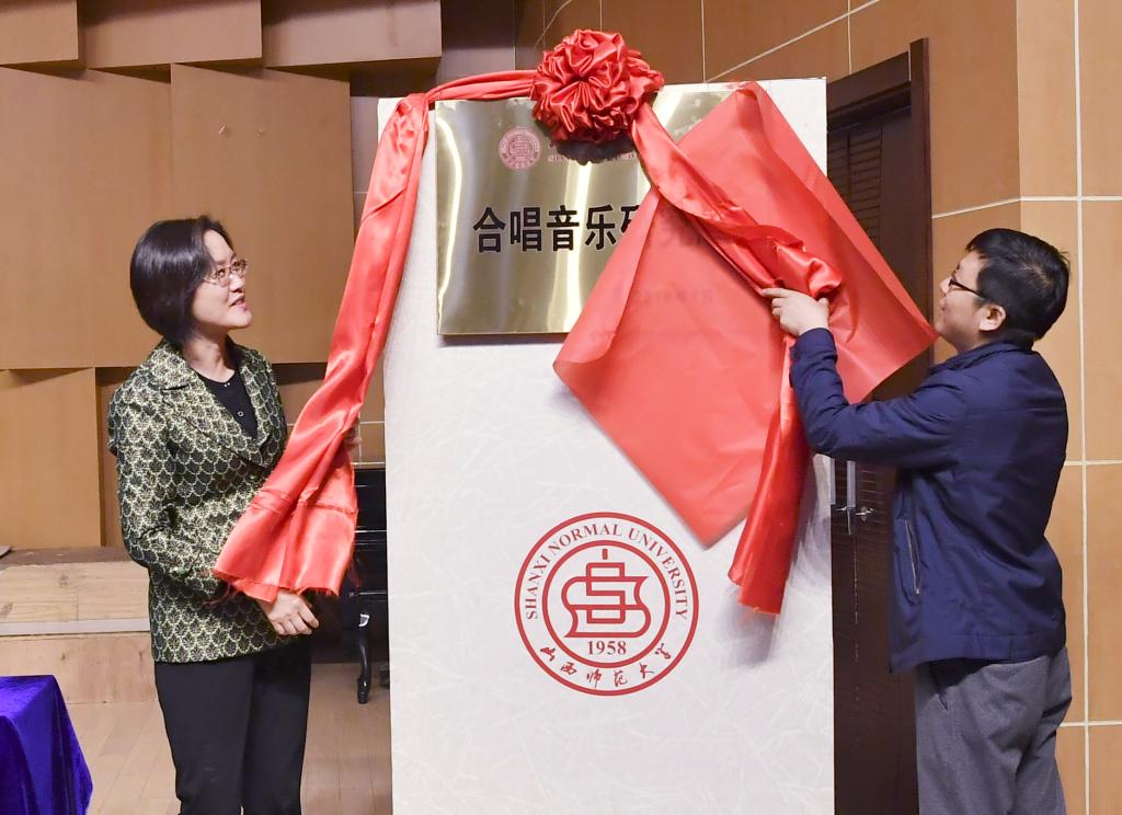 副校长许小红为“37266威尼斯官网合唱音乐研究所”揭牌
