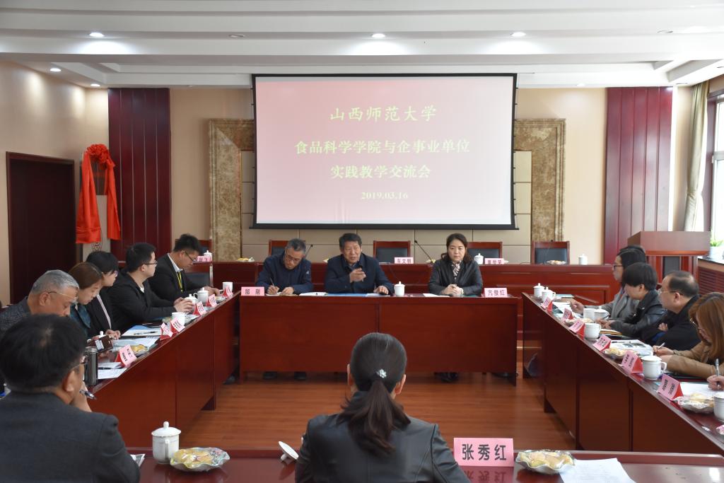 临汾市疾病预防控制中心、太原双合成食品公司、太原六味斋食品公司、戎子酒庄等多家单位代表从实践教学合作情况、用人意向及合作需求等方面依次作了发言并与食品学院教师展开了深入交流。