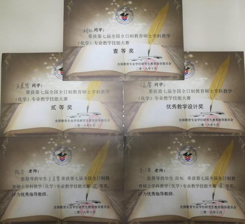 威尼斯官网研究生在第七届全国教育硕士学科教学(化学) 专业教学技能大赛中喜获佳绩
