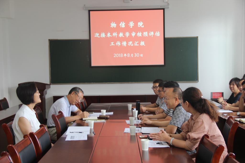 8月30日上午,校党委常委、副校长许小红和教指委任引哲教授深入物信学院检查指导本科教学审核评估工作,并在四号楼二层多功能会议室听取了物信学院迎接本科教学审核预评估工作情况汇报。学院全体中层以上干部参加了汇报会。