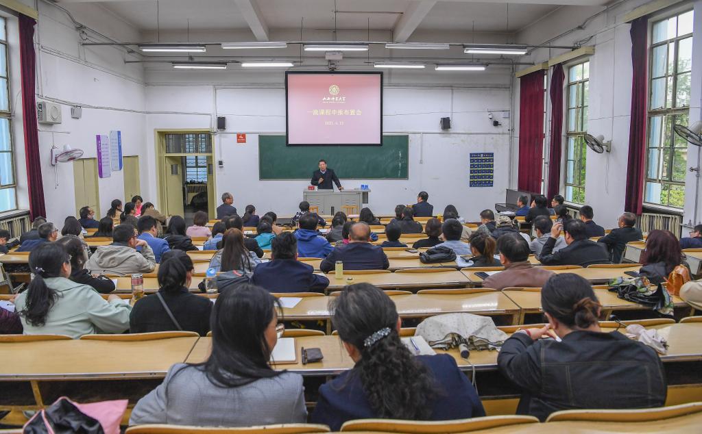 杨军在讲话中强调了一流课程建设的重要意义,鼓励广大教师积极申报一流课程。他指出,课程是专业建设的基础,建好课程是提高人才培养质量的基本保证,也是教师的立身之本;教师要依托团队,通过交流研讨,借鉴成功经验,努力做好课程建设和申报工作。