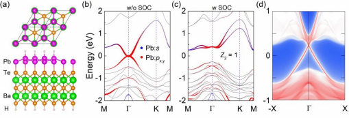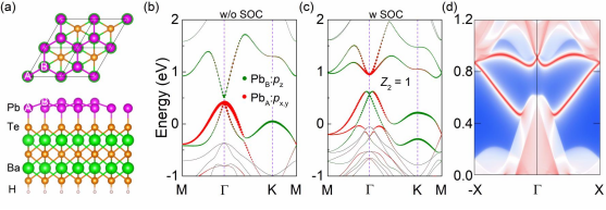 图3. PbH/BaTe(111)的电子能带以及拓扑特性