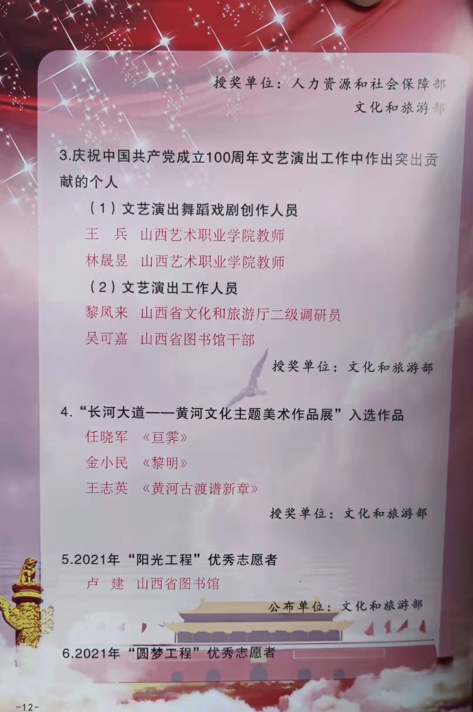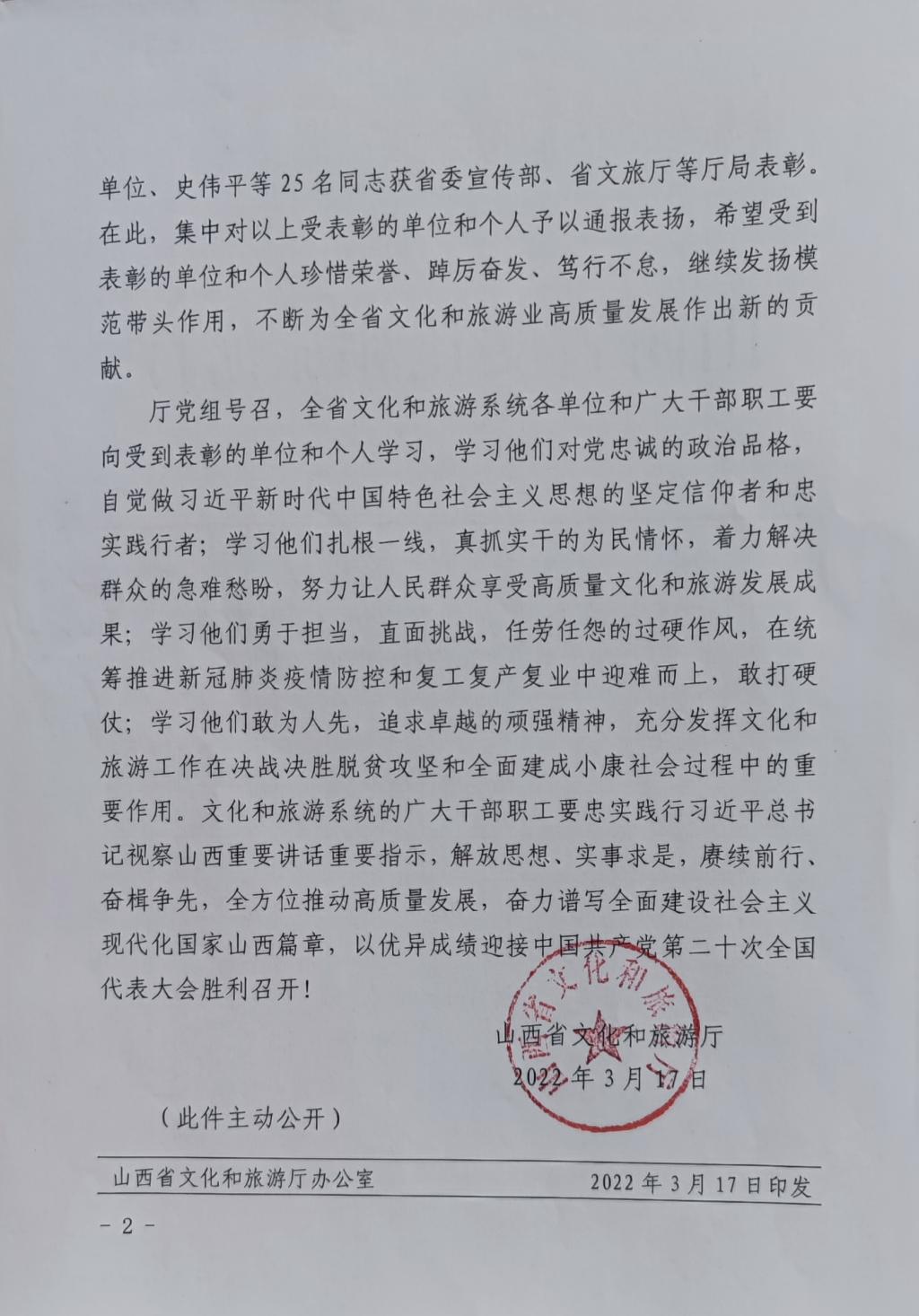 山西省文化和旅游厅党组号召,受到文旅部表彰的单位和个人珍惜荣誉、踔厉奋发、笃行不怠,继续发扬模范带头作用,不断为山西省文化和旅游业高质量发展做出新的贡献。(美术学院/文 饶二保/摄)