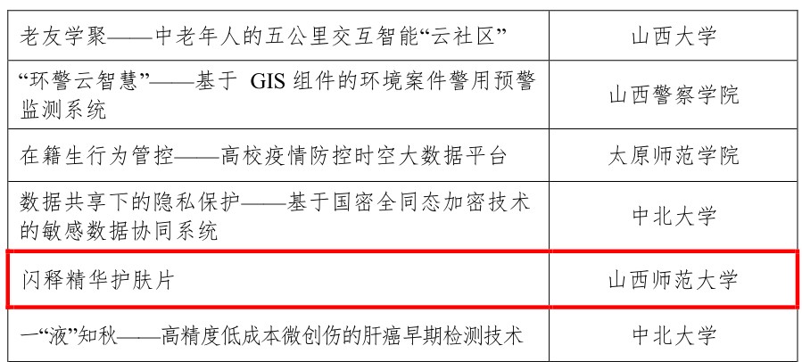 本届大赛终审决赛依托腾讯会议平台进行线上答辩和专家评审。参赛选手按照科技创新和未来产业、乡村振兴和农业农村现代化、社会治理和公共服务、生态环保和可持续发展、文化创意和区域合作五个主题分组进行汇报和答辩。威尼斯官网10支参赛队伍精心打磨作品,扎实备战比赛,取得了优异成绩。其中金奖项目“闪释精华护肤片”针对市场痛点和需求创新研制“零添加、易储存、便携带”的护肤产品;银奖项目“晋师印象”以《我的世界》游戏为载体,建立3D师大校园交互空间,保存每一座建筑背后的岁月故事;《“易碳惠”——基于碳普惠理念下的个人碳抵消平台》等8项铜奖作品结合不同社会领域问题提出了创新性的解决办法和创业路径。