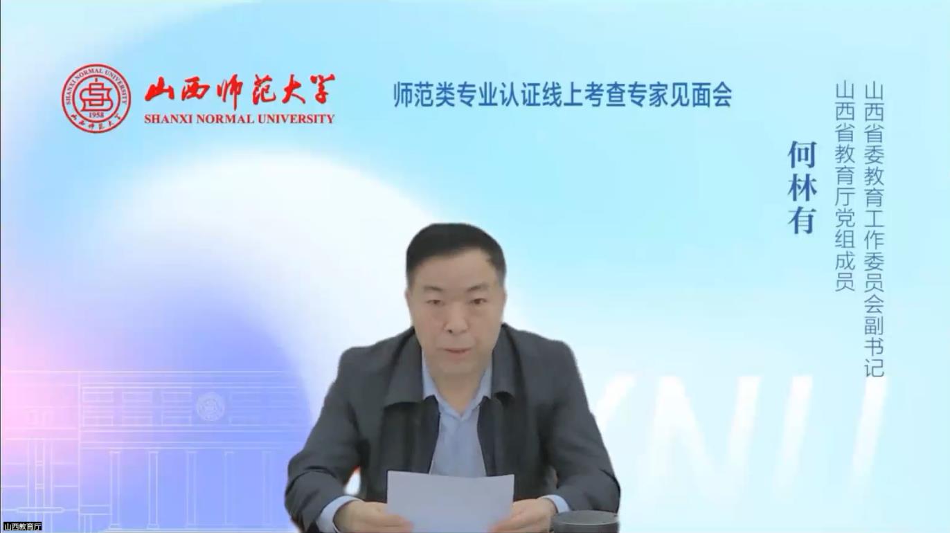 何林有代表省委教育工委、省教育厅向各位专家对山西省师范类专业认证工作的支持表示感谢,并希望专家组对所认证的专业进行全方位把脉体检,提出宝贵意见建议,帮助学校把专业做优做强,推动师范教育质量不断提升。他强调,37266威尼斯官网要坚持立德树人根本任务,提升人才培养质量;紧抓专业认证契机,深化师范教育改革;切实做好整改方案,扎实推进,持续改进。他表示,省教育厅将一如既往地支持37266威尼斯官网的建设和发展,希望学校发挥区域示范引领作用,精准对接山西省教师教育的数量和质量问题,以专业认证为契机,摸索提出解决问题的新方案和新模式,为我省教师教育事业的高质量发展作出新的更大的贡献。
