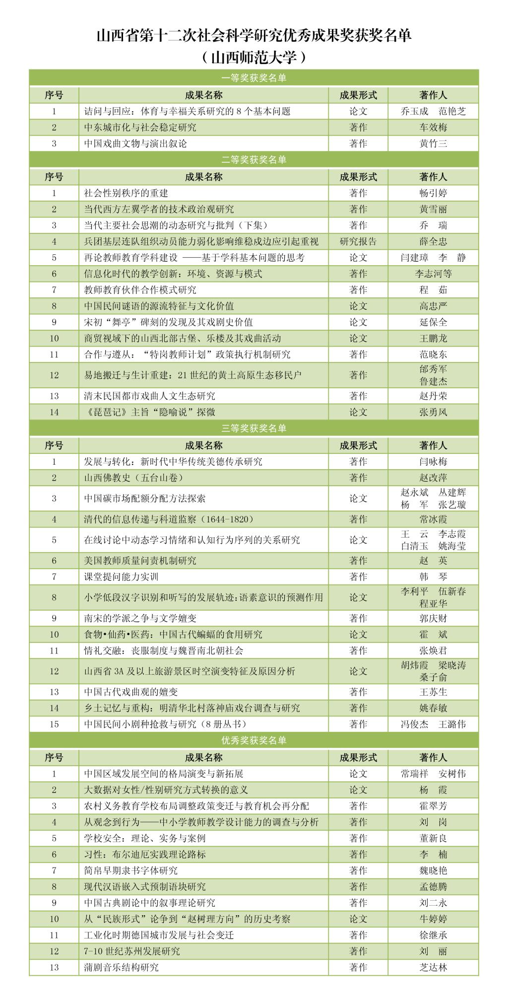 威尼斯官网45项成果喜获山西省第十二次社会科学研究优秀成果奖