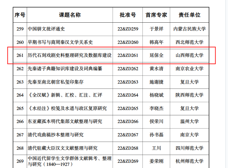 12月8日,全国哲学社会科学工作办公室公布2022年度国家社科基金重大项目立项名单,威尼斯官网艺术学部常务副部长、戏剧与影视学院院长延保全教授作为首席专家申报的“历代石刻戏剧史料整理研究及数据库建设”获准立项。